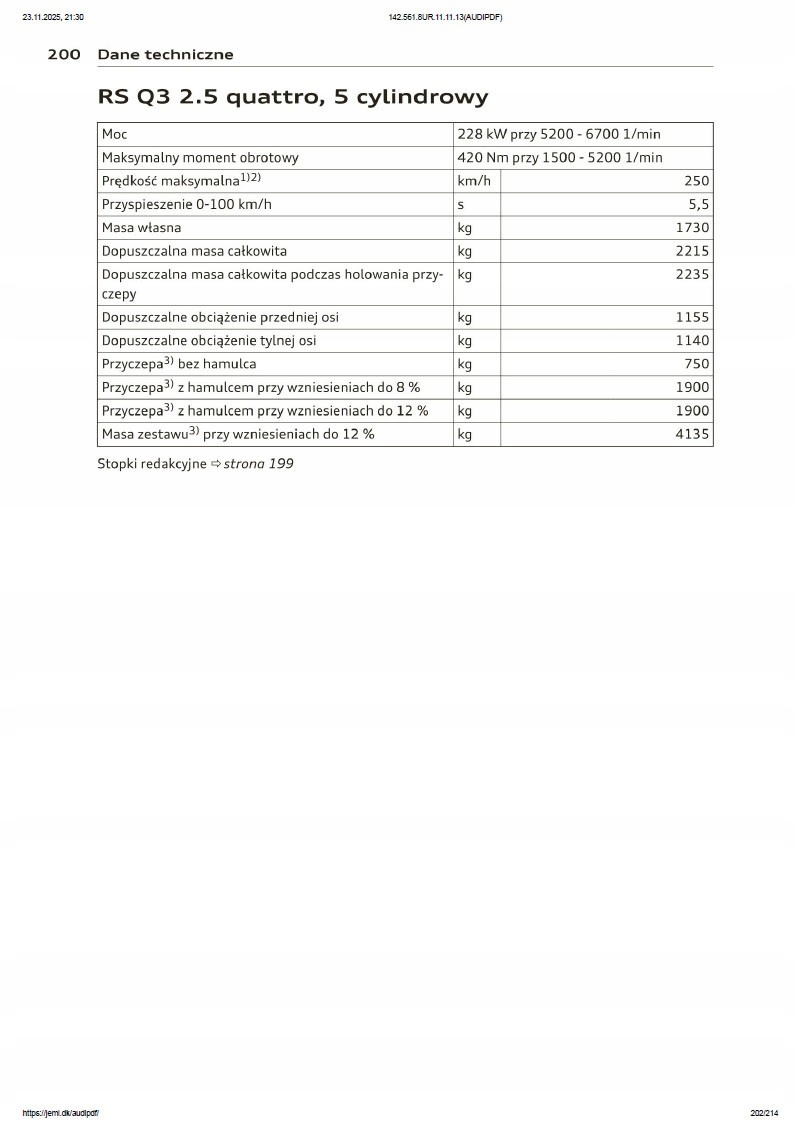 Audi RS Q3 2013 - 2015 польська інструкція з експлуатації