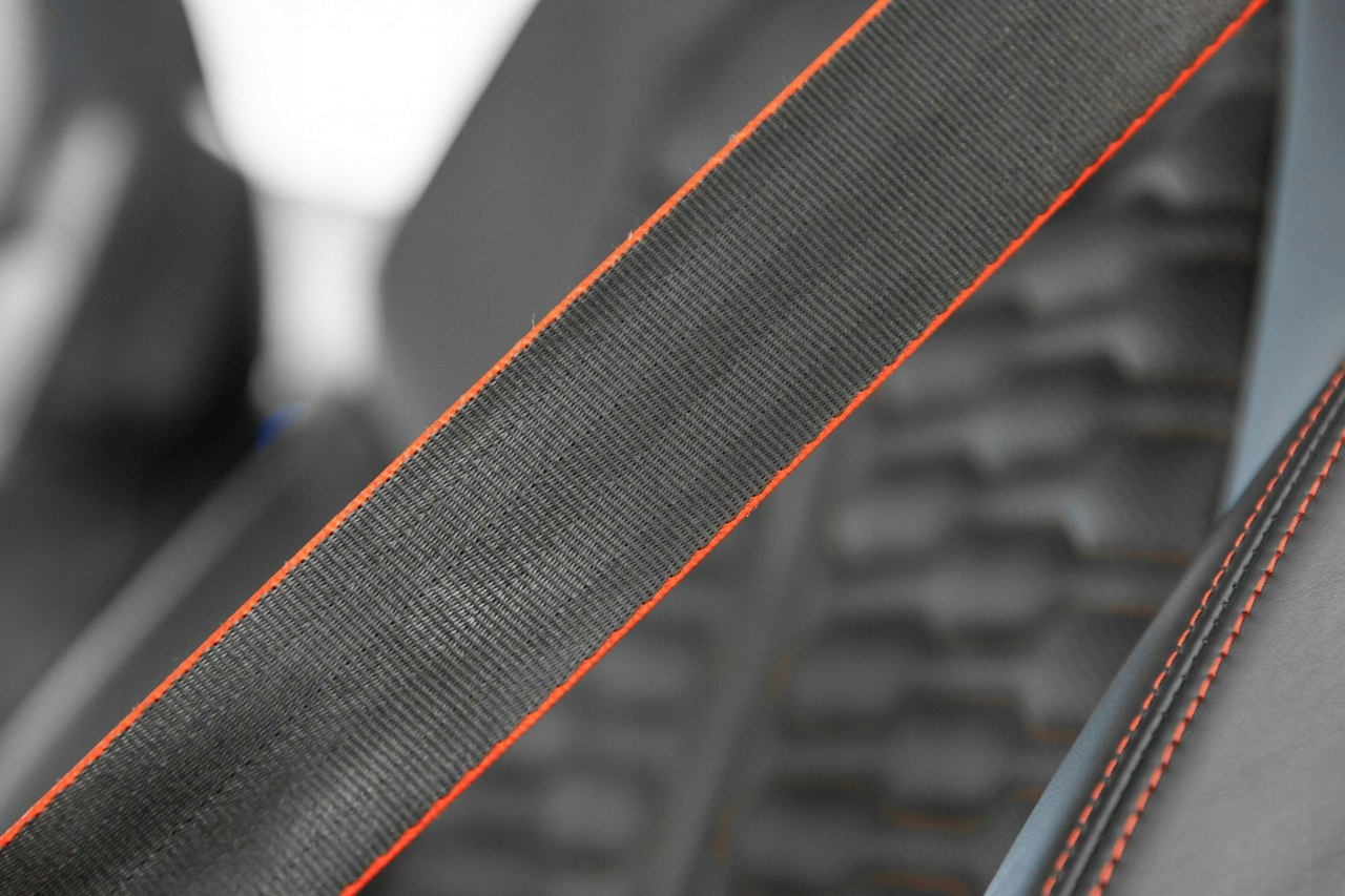 - Передні вентильовані спортивні сидіння RS із перфорованою шкірою Valcona з прострочкою.