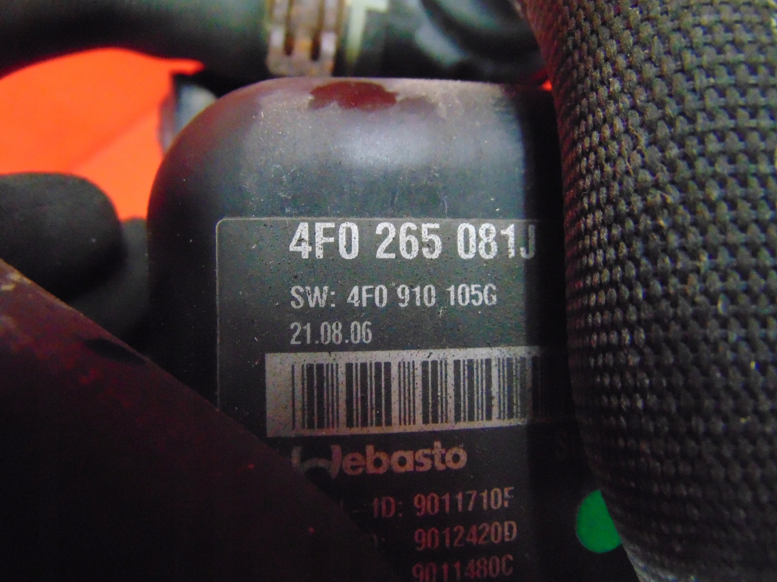 - WEBASTO ПАРКОВКА ОПАЛІВАННЯ 4F0265081J З ОХОЛОДЖУВАЧЕМ ВИХЛОПНИХ ГАЗІВ, ВОДЯНИМ НАСОСОМ ТА ЕЛЕКТРОМАГНІТНИМ КЛАПАНОМ 8F0820036