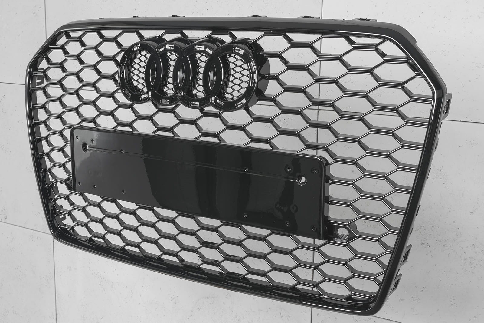Спеціальний гриль був розроблений у стилі, характерному для автомобілів із сегмента RS. Гриль, який керується, з характерною схемою стільника, незамінно приводить до уваги огляд, сповнений потужних спортивних автомобілів з верхньої полиці. Елемент вражає спортивним персонажем, а блиск чорних лакованих елементів надає йому елегантність - завдяки якому він ідеально гармонізується вражаючим дизайном Audi S6.