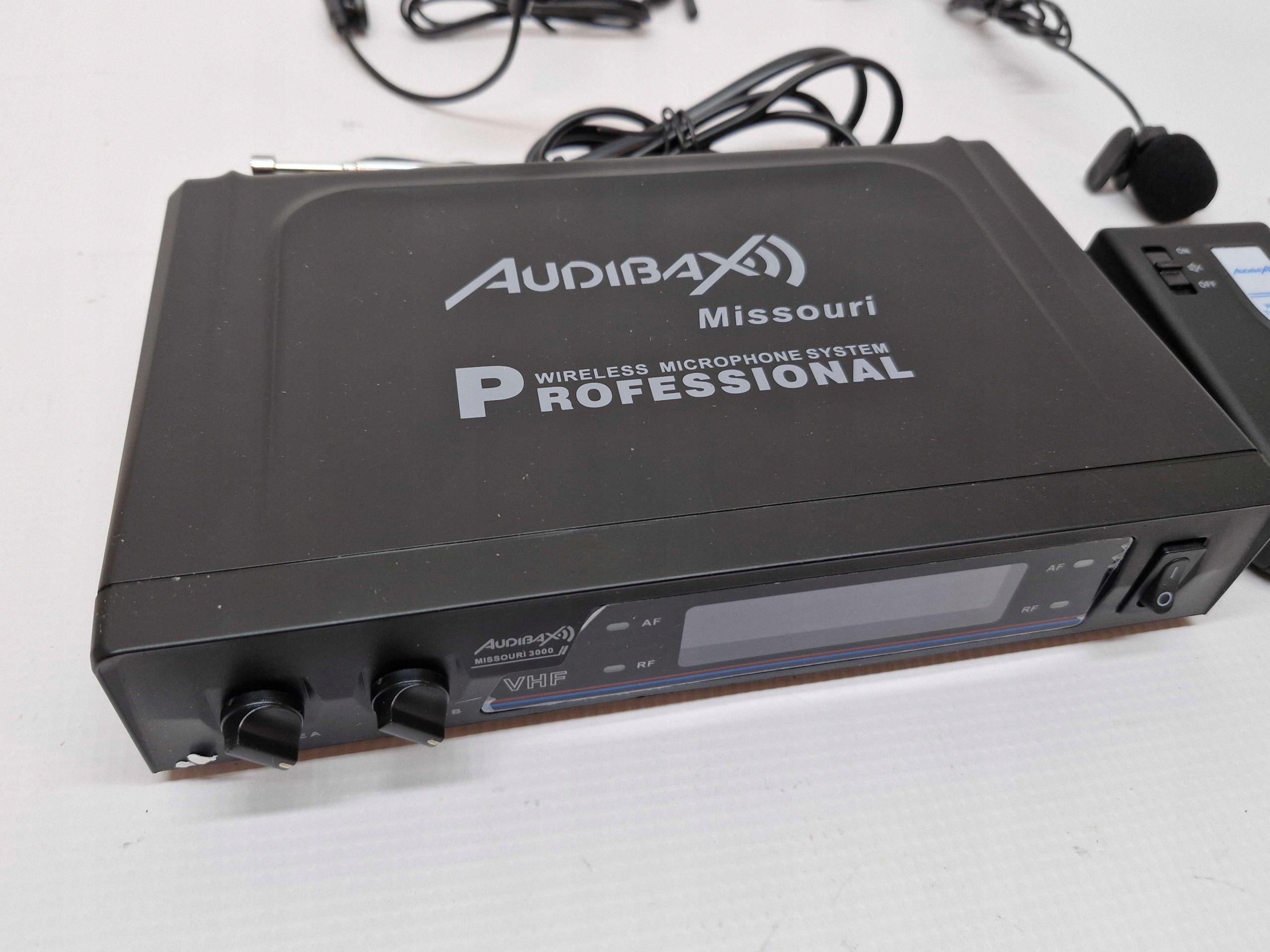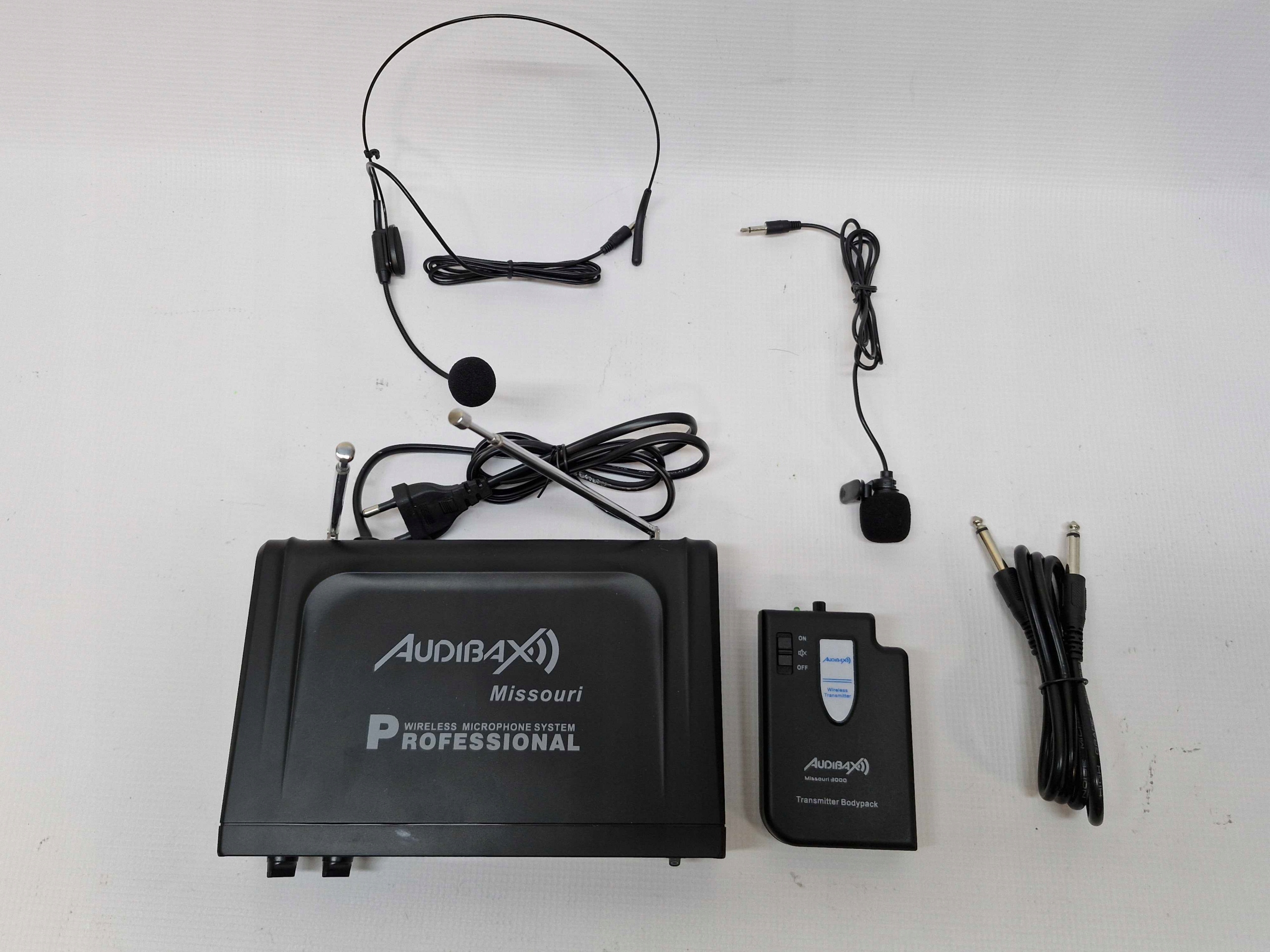 - Назва елемента : Audibax - Missouri 3000 - Подвійний професійний радіо мікрофон - встановлений з 1 ручним мікрофоном та 1 пакетом смуги голови/шиї - діапазон 80 метрів - перемикач/перемикач - батареї AA