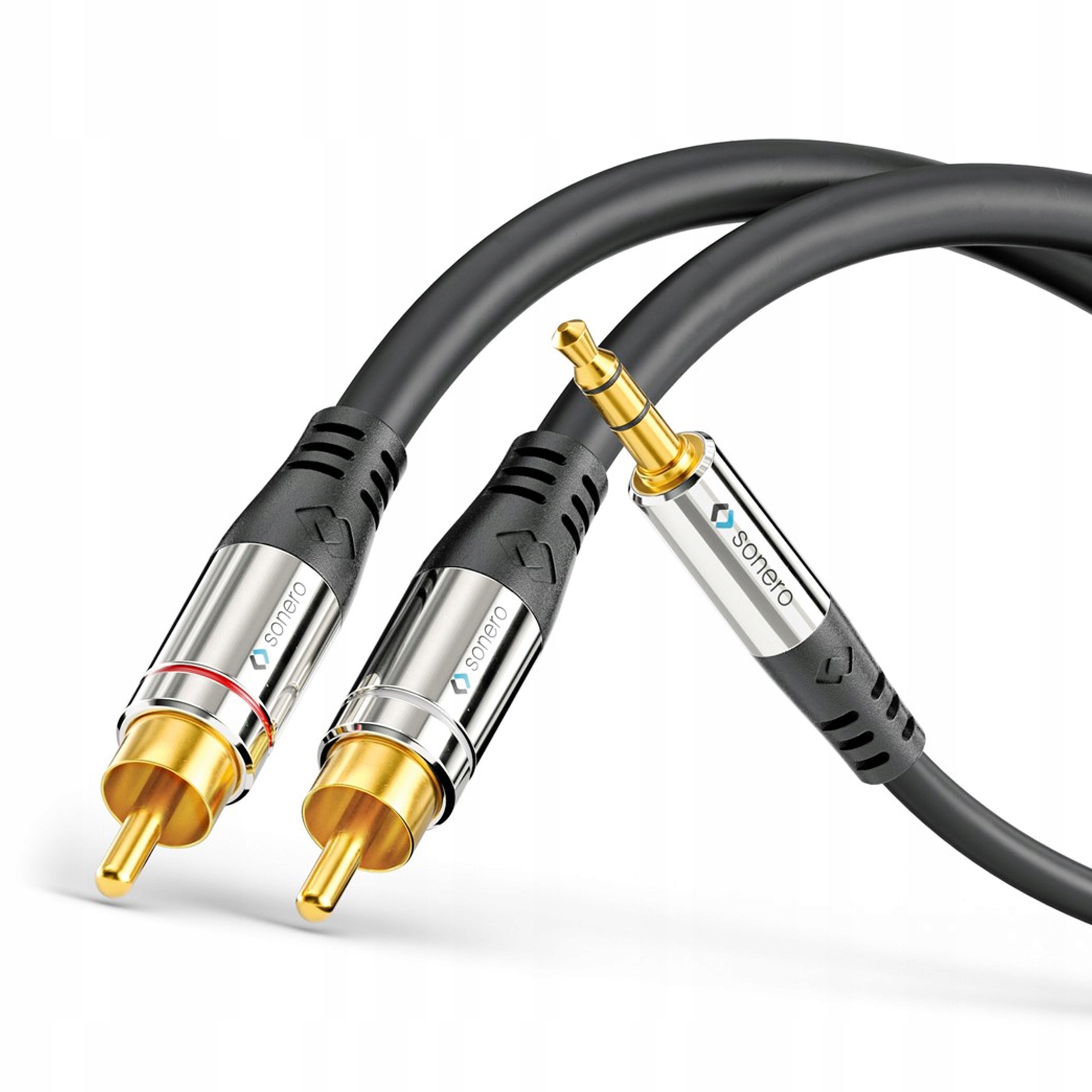 ✅ Оснащенийпозолоченим роз'ємом 3,5 мм і штекерами RCA, високоякісний стереоаудіокабель від Sonero.