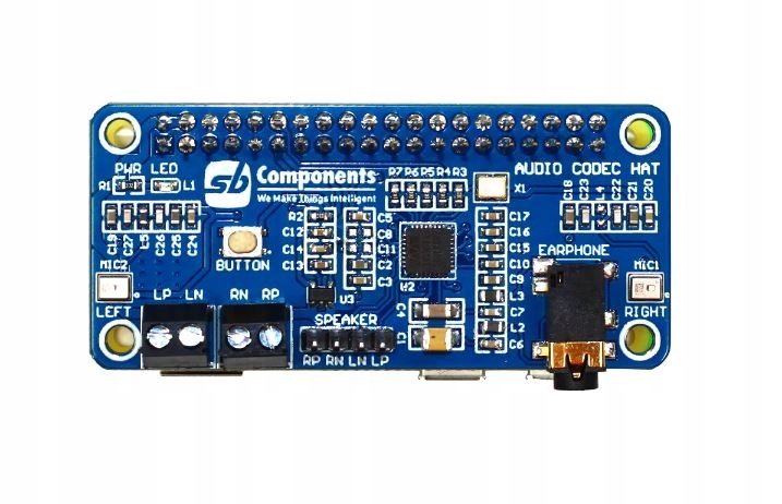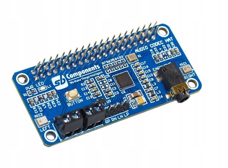 Модуль з аудіокодеком WM8960, призначений для міні-комп'ютерів Raspberry Pi. Він дозволяє керувати стереодинаміками потужністю 1 Вт і двома мікрофонами через інтерфейс I2S. Оснащений роз'ємом джек 3,5 мм для підключення навушників і двома гвинтами для підключення колонок. У розпорядженні користувача два мікрофони MEMS і кнопка. Модуль підключається до міні-комп’ютера через 40-контактний роз’єм GPIO і розроблений для проектів із використанням голосового помічника.