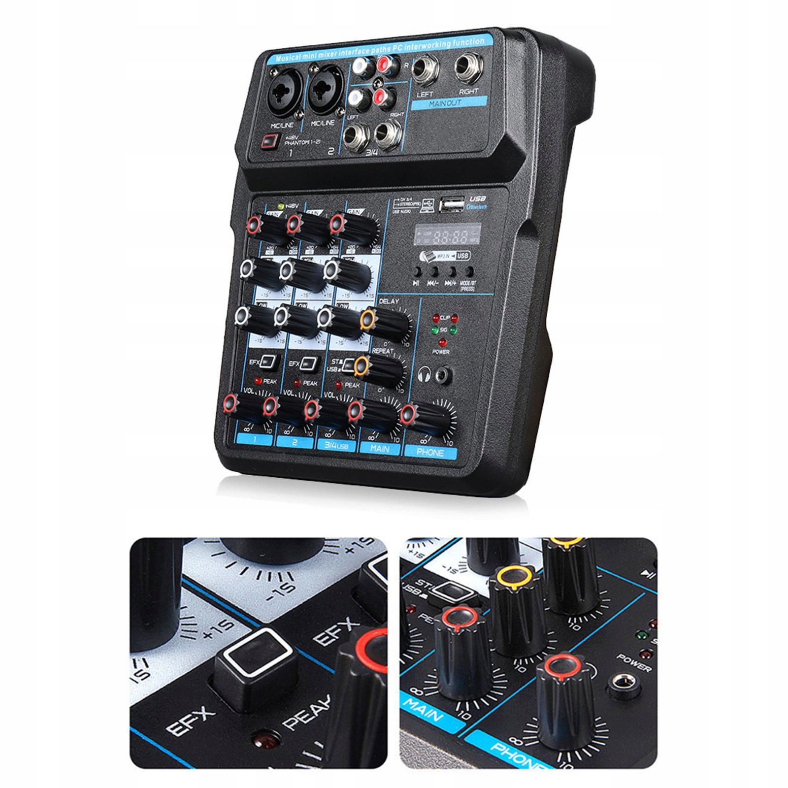 Регульований розмір підсилення: вбудоване фантомне живлення 48 В, придатне для прямого живлення конденсаторних мікрофонів. Вихідний порт для навушників високої чіткості, кілька програвачів аудіоформату. Його можна під’єднати до комп’ютера через USB для створення зовнішньої звукової карти.