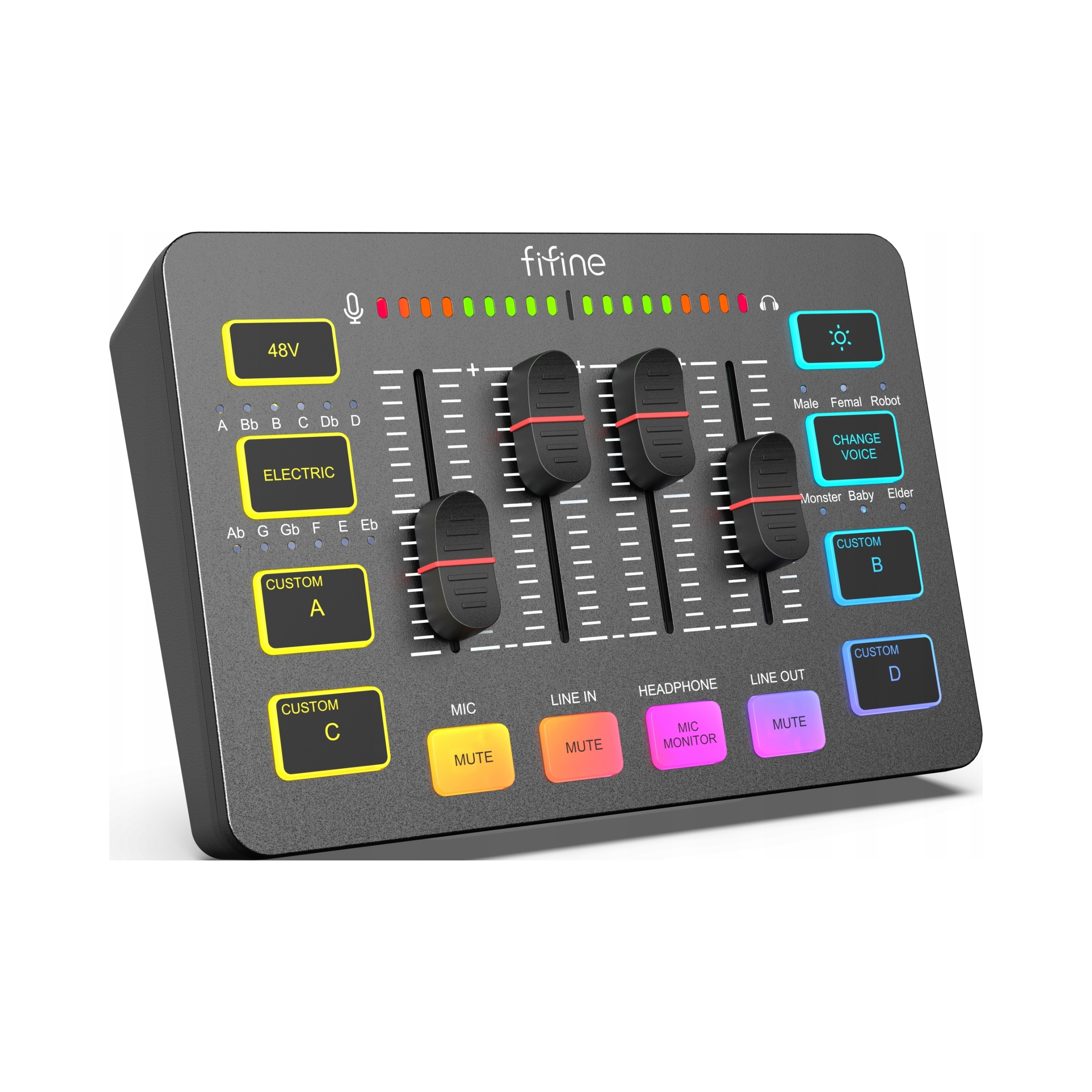 Аудіо мікшер Fifine Sound Card SC3 Black USB z RGB XLR