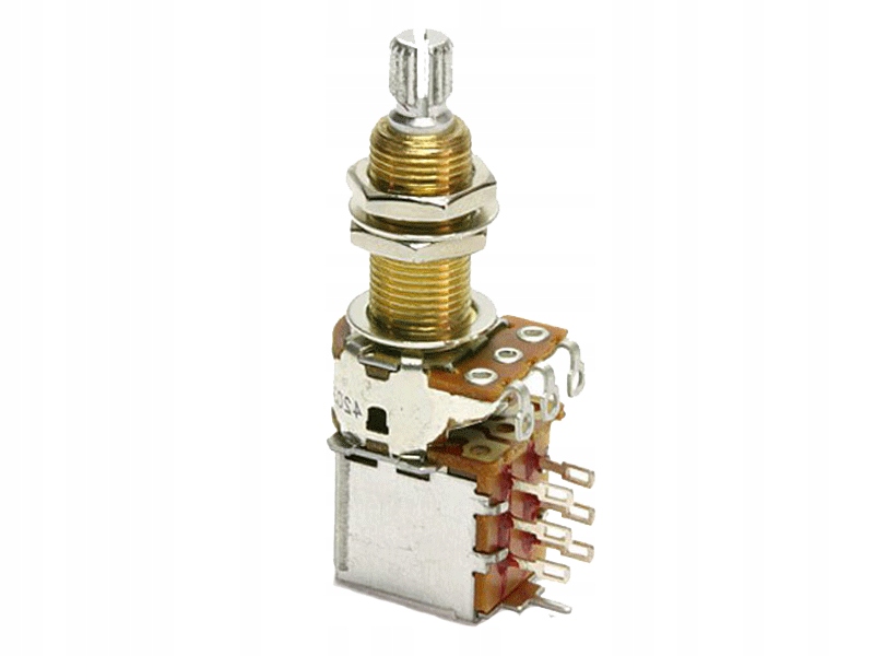 Найновіші двотактні потенціометри (як увімкнення, так і вимикання здійснюється натисканням ручки - її не потрібно витягувати, як у двотактній). Прем'єр-ліга світу. . Висококласні професійні потенціометри серії PDB185-GTR, які використовуються найкращими компаніями-виробниками гітар. Присвячується гітарам GIBSON