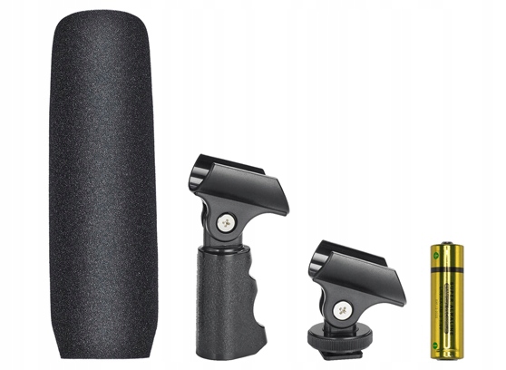 Вітрозахисна піна захищає від шуму вітру, два монтажні кронштейни дозволяють легко встановити на камеру та штатив, а акумулятор, що входить до комплекту, робить пристрій готовим до використання одразу після вилучення з коробки.