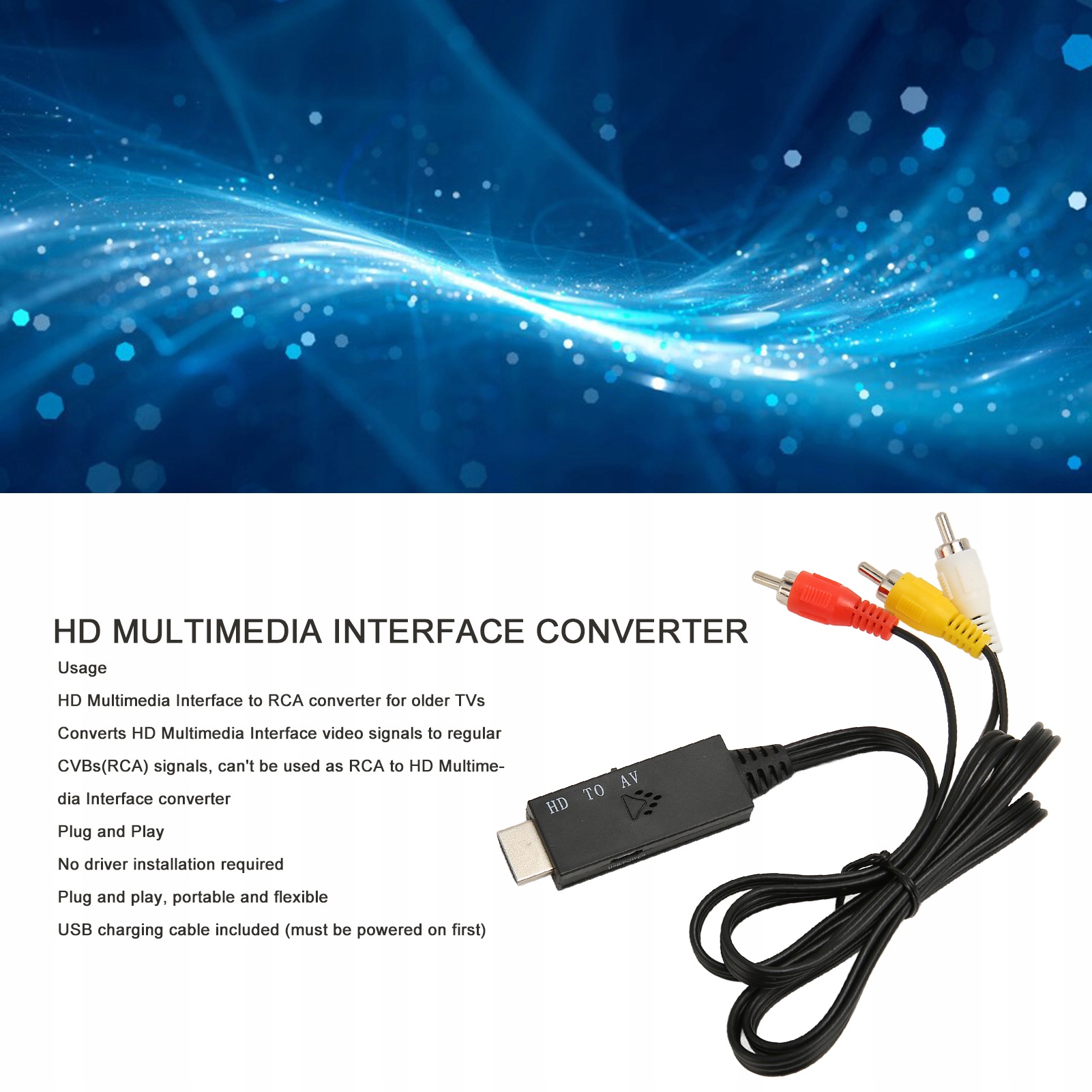 2. Plug and Play: цей конвертер мультимедійного HD-інтерфейсу в RCA працює за принципом «вмикай і працюй» без встановлення драйвера, портативний і гнучкий. USB-кабель для заряджання входить у комплект (потрібно спочатку ввімкнути)