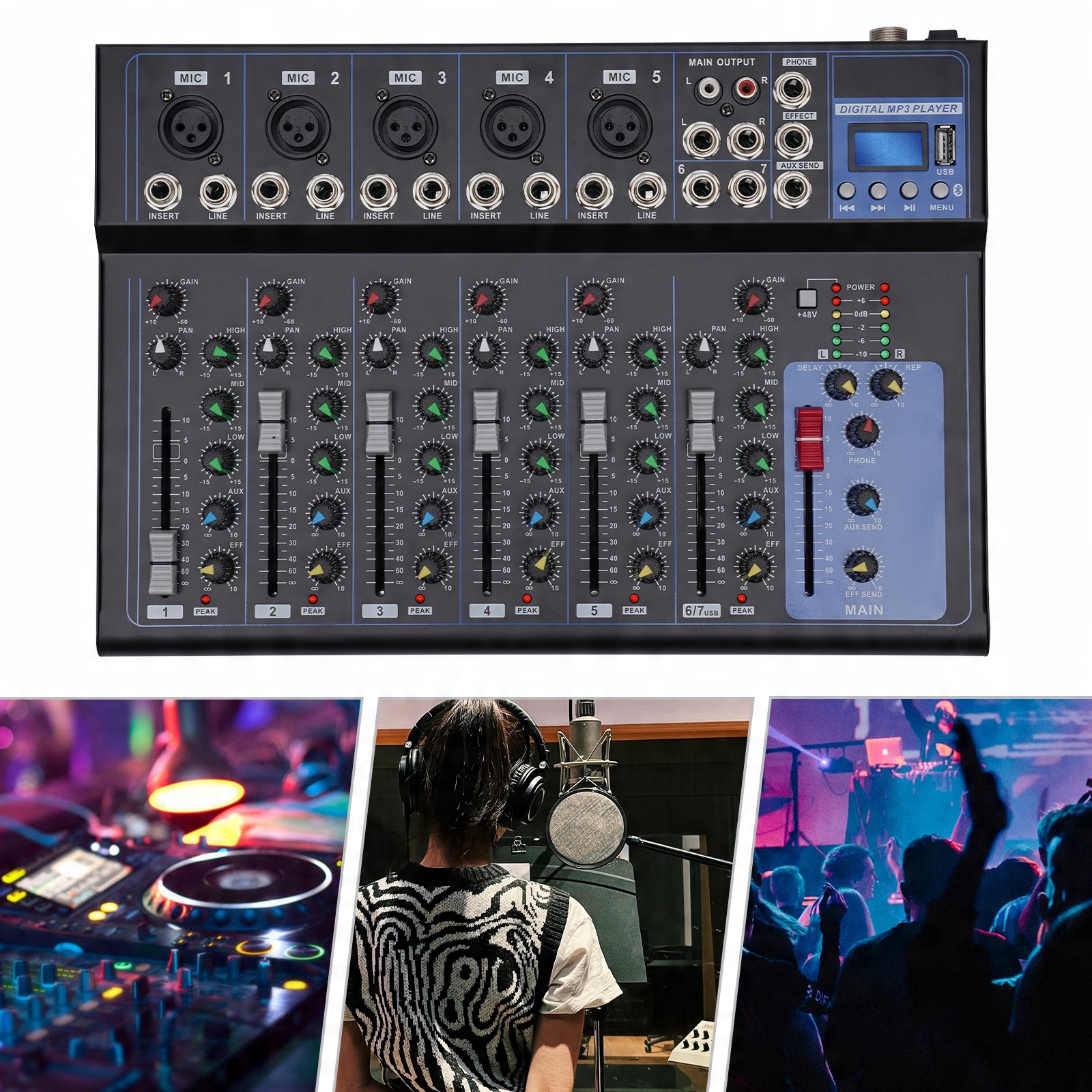 Завдяки чудовій функціональності та простому використанню, цей 7-канальний аудіо змішувач адаптований до виступу на сцені, взаємодії в прямому ефірі тощо, надаючи вам ідеальну ясність та якість звуку для вас та вашого аудиторія. Побудований -у підключенні Bluetooth та сумісності з багатьма пристроями дозволяють легке стикування. Він також оснащений різноманітними музичними режимами для гнучкої адаптації до різних аудіо -потреб, додавання необмежених можливостей аудіо ефектів та придбання аудиторії. Підтримка продукту та запобігання подряпинам на стільниці. >
