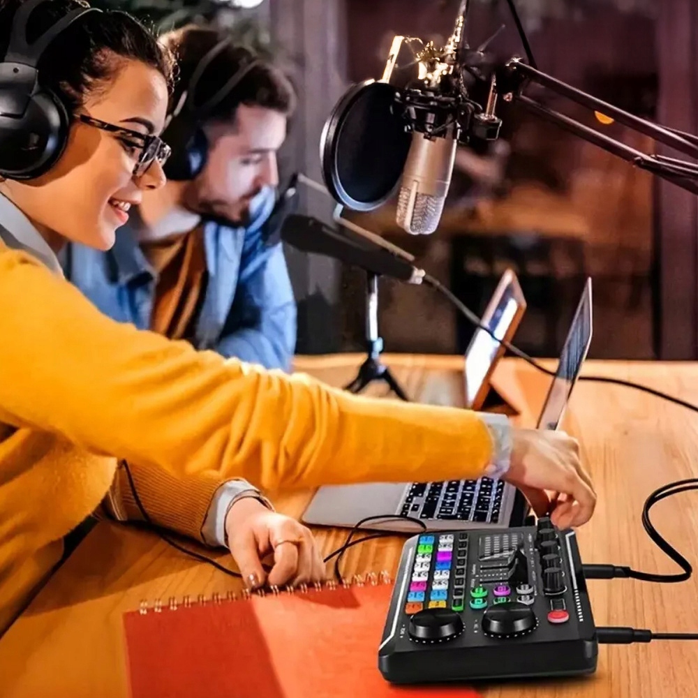 F998 підтримує подвійну живу передачу з телефонів, подвійних мікрофонів і працює без проблем із телефонами, комп'ютерами, планшетами, PS4, Xbox, Switch, IOS та Android -системами. Ідеально підходить для запису в студії, караоке, голосовому чаті та платформах, таких як Facebook, YouTube, Tiktok та WeChat.