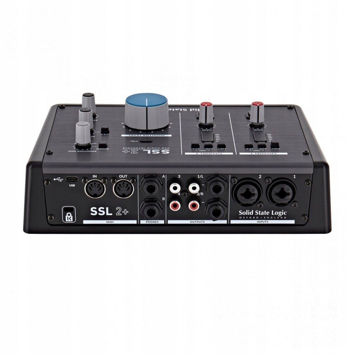 SSL 2+ оснащено роз’ємом MIDI I/O та двома додатковими незбалансованими виходами. Інтегрований роз'єм MIDI забезпечує засоби для обробки сигналів MIDI від таких пристроїв, як клавіатури, семплери тощо. Два додаткових виходи ідеально підходять для ді-джеїв, дозволяючи записувати мікси безпосередньо з програвачів або контролерів.