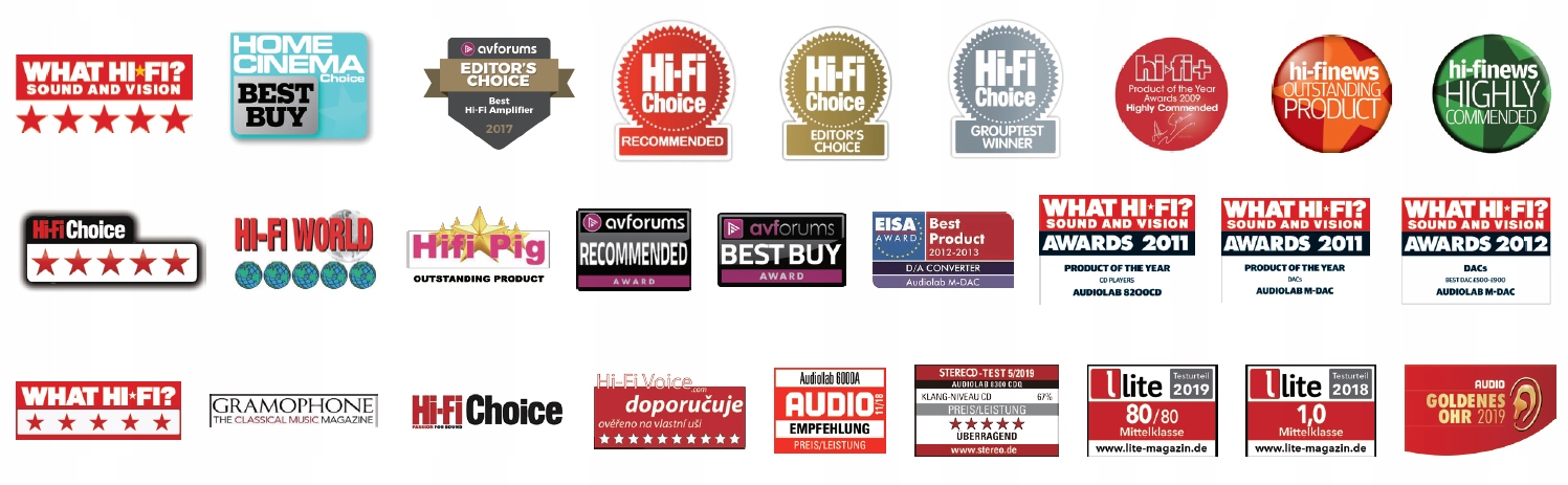 Вище ви можете побачити нагороди Audloab за останні роки в рейтингах тестів і оглядах з усього світу звуку.