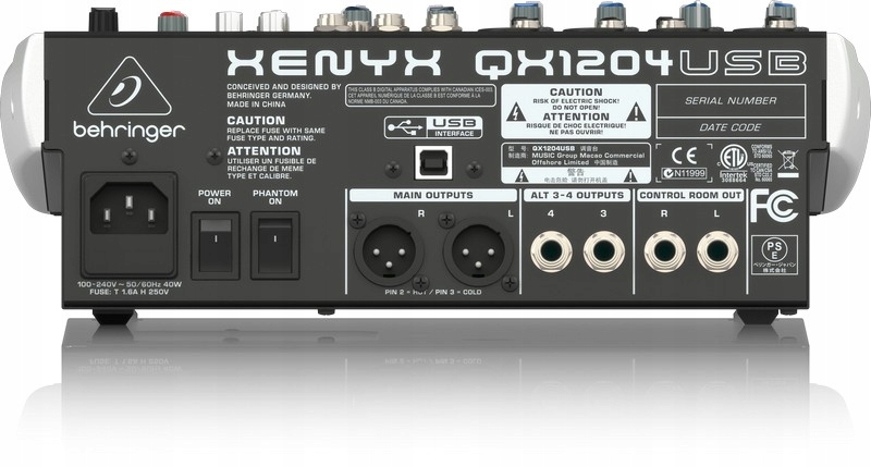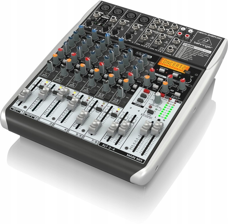BEHRINGER XENYX QX1204USB – аналоговий мікшер XENYX QX1204USB із наднизьким рівнем шуму з процесором KLARK TEKNIK FX, 4 мікрофонними попередніми підсилювачами XENYX та індивідуальним фантомним живленням.
