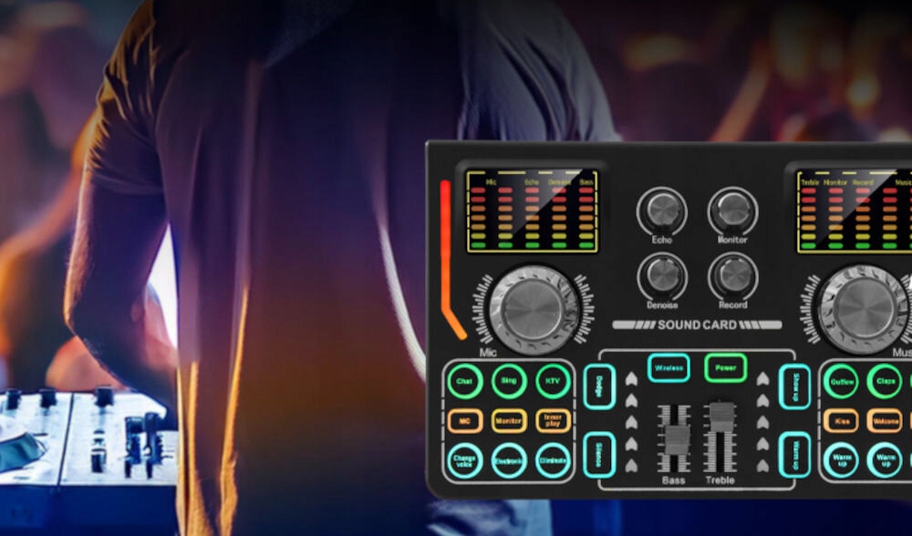 ⭐ MusicMate MM-SC200 пропонує три входи для мікрофона, два входи для прямого ефіру, вихід для навушників, вихід для монітора та OTG/USB-C. Це дозволяє легко підключати смартфони, планшети, ноутбуки та музичні плеєри. Кольорове підсвічування кнопок полегшує навігацію та роботу за будь-яких умов.