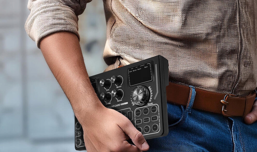 ⭐ Зовнішня звукова карта MusicMate MM-SC200 — це універсальний інструмент для всіх творців аудіо- та відеовмісту. Завдяки більш ніж 20 різноманітним ефектам і звуковим фільтрам, які працюють у режимі реального часу, кожен користувач може отримати професійний звук без додаткового програмного забезпечення.