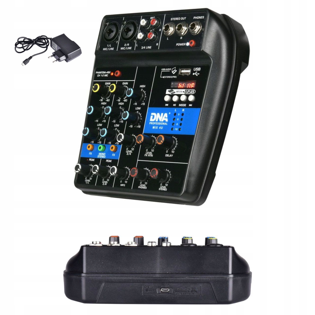 Інноваційним аспектом мікшера є вбудований ефект затримки, необхідний для точного контролю поширення звуку. Легко регулюйте частоту та рівень затримки для кожного каналу, забезпечуючи неперевершену якість звуку.Незалежно від того, чи ви цільовий вихід аудіо на динаміки чи на навушники, мікшер DNA MIX 4U забезпечує чудові результати. Вбудований USB-порт із MP3-плеєром є ще однією перевагою цього пристрою, що дозволяє підключати його до ноутбука, карт пам’яті та інших аудіоджерел, відкриваючи перед вами необмежені можливості.