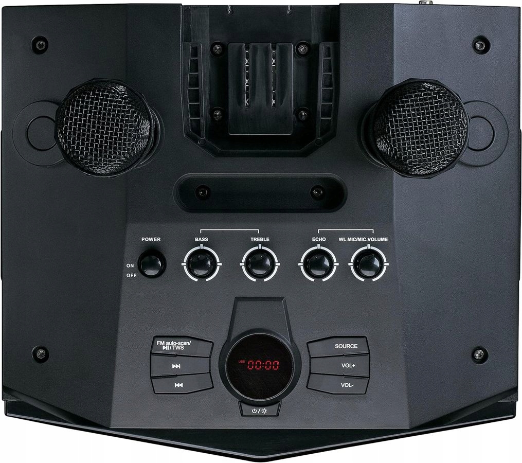 Жодна вечірка не обійдеться без цього PA-220! Завдяки фронтальному освітленню можна відразу перетворити кімнату на справжню дискотеку. Світлові ефекти можна навіть налаштовувати під ритм музики. Включає два бездротових мікрофони, щоб ви могли співати разом. Не хочеш співати? Легко зберігайте свої мікрофони в тримачах мікрофона динаміка.