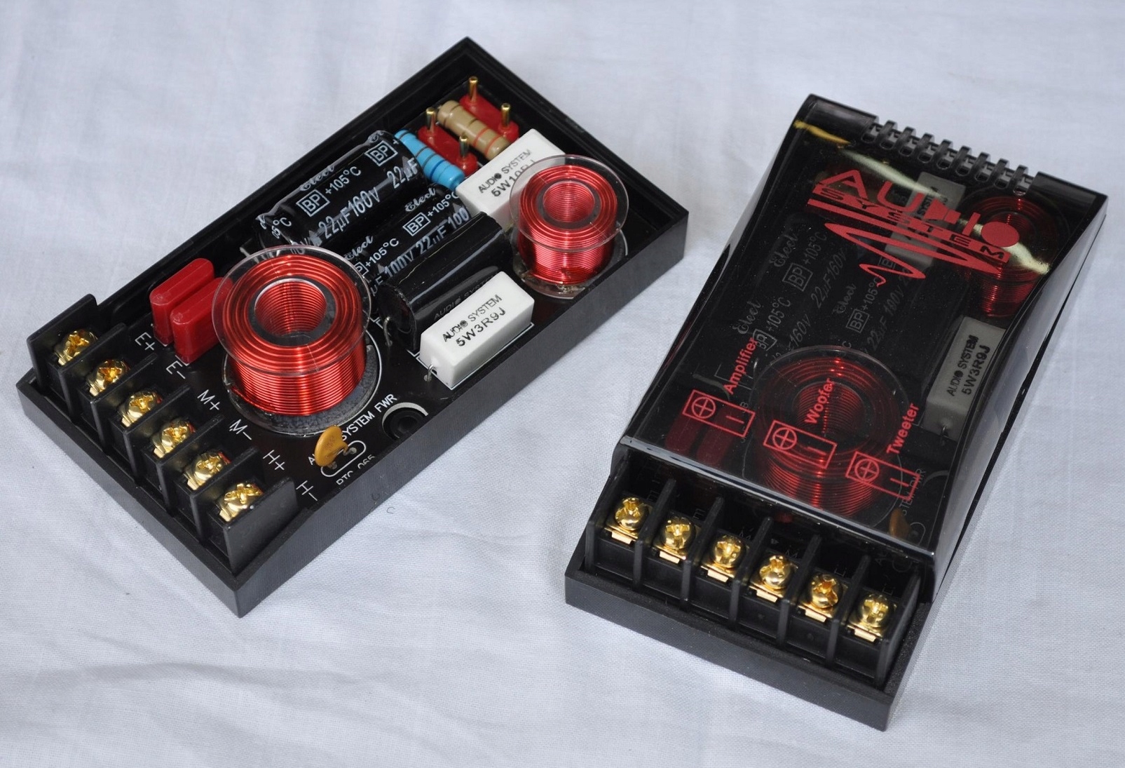 - advanced switch with 4-level Tweeter work, Setting the slope of the slope, richly equipped with plastic capacitors and large air Котушки, які дозволяють забезпечити більше потужності динамікам, зберігаючи мінімальні спотворення,