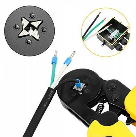 чотири швидкості конструкції інструменту для затягування дроту забезпечує точний вигляд лінії друку. Чотирикутний затискач забезпечує оптимальну контактну поверхню кабельних кінчиків. Дизайн самостійного вигляду храповика, автоматично адаптується до відповідного діаметра кінців для видалення ізоляції, підвищує точність та надійність під час затискання, щоб уникнути витрачання кінців.
