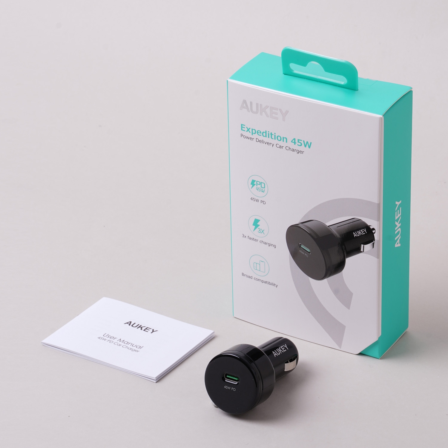 AUKEY CC-Y13 до надкомпактного автомобільного зарядного пристрою USB-C потужністю 45 Вт. Він дозволяє швидко заряджати смартфони та планшети, підтримуючи технологію Power Delivery 2.0. Виготовлений з якісних матеріалів, має стильний зовнішній вигляд, практично не виступає з гнізда прикурювача. Дозволяє легко підключити зарядний кабель завдяки двосторонньому роз’єму USB-C. Він оснащений системою захисту від перевантаження, перегріву та короткого замикання.