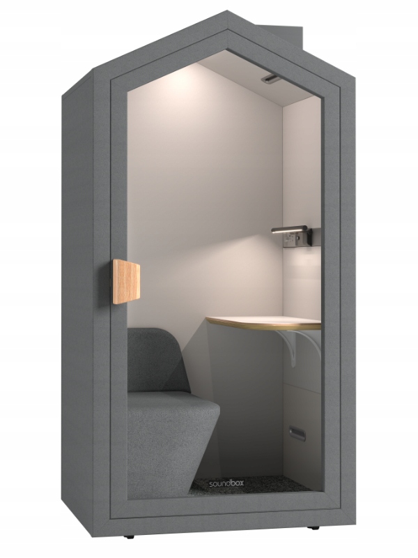 Сучасна звукоізоляційна акустична кабіна - це абсолютна повинна мати в сучасних інтер’єрах офісів, офісів, офісів, аеропортів, готелів, а також вдома. Кабіна надає можливість проведення телефонних дзвінків або телеконференцій у зручних умовах, в яких ви можете зосередитись на розмові та вести її, не заважаючи колегам чи членам домогосподарства. Засклені двері роблять кабіну надзвичайно легкою і прикрашають інтер’єр, в якому вона знаходиться. Невелика практична телефонна будка буде працювати в сучасному офісі, що характеризується інноваціями та будинком як комфортне місце для роботи в Інтернеті, навчальних або телефонних дзвінків. Кабіна була виготовлена з високоякісної сировини, що забезпечує адекватну звукоізоляцію. Внутрішній дизайн та закінчення заохочуйте використовувати це зручне місце, коли виникає потреба.