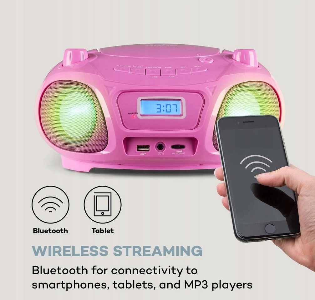 Auna 10029815 Бумбокс з CD плеєром рожевий Disco Light Bluetooth