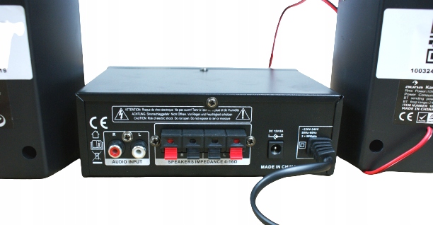- роз’єми: 1 x USB-порт, 1 x SD-порт, 2 x 3,5 мікрофонний вхід, 1 x лінійний вхід RCA, 2 x вхід/затискачі для динаміка, 1 x DC 12 В / 5 A вхід