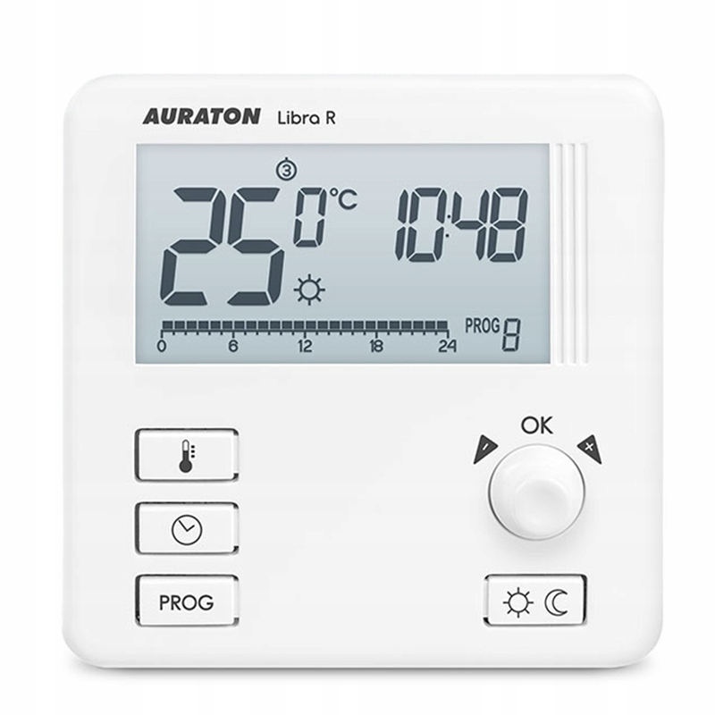 Бездротовий тижневий терморегулятор, що входить до складу контролера нагрівального пристрою, працює в режимі нагрівання або охолодження. Унікальний алгоритм аналізу циклу нагріву дозволяє фіксувати робочі параметри ресивера за останні 24 години.AURATON Libra SET дозволяє користувачеві керувати 7 незалежно налаштованими програмами, а також оснащений заводською установкою температури антифризу. Регулятор має ергономічну форму, що дозволяє легко встановити і спеціальний перемикач, який полегшує обслуговування опалювального приладу. Терморегулятор оснащений ШІМ-режимом роботи, який передбачає циклічне включення і виключення нагрівального приладу, мінімізуючи перепади температури. ШІМ-алгоритм підтримує тепловий комфорт у приміщенні, передбачаючи поведінку системи опалення, забезпечуючи при цьому менше споживання енергії.