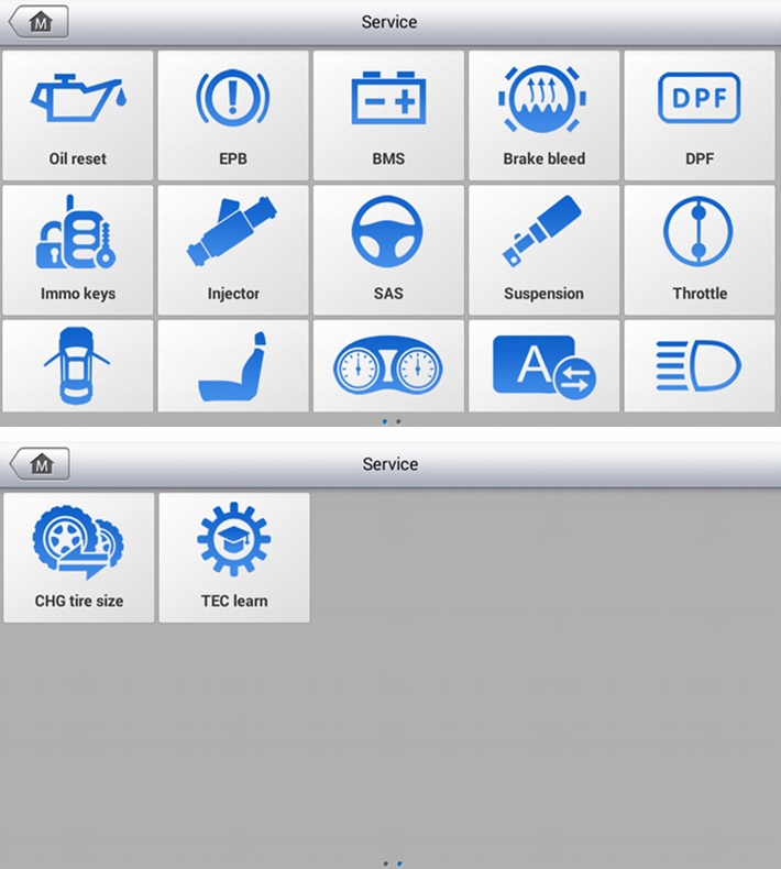 - До 20 сервісних функцій, таких як Oil Reset, EPB, BMS, SAS, DPF, Injector, Trans adaptation та інші