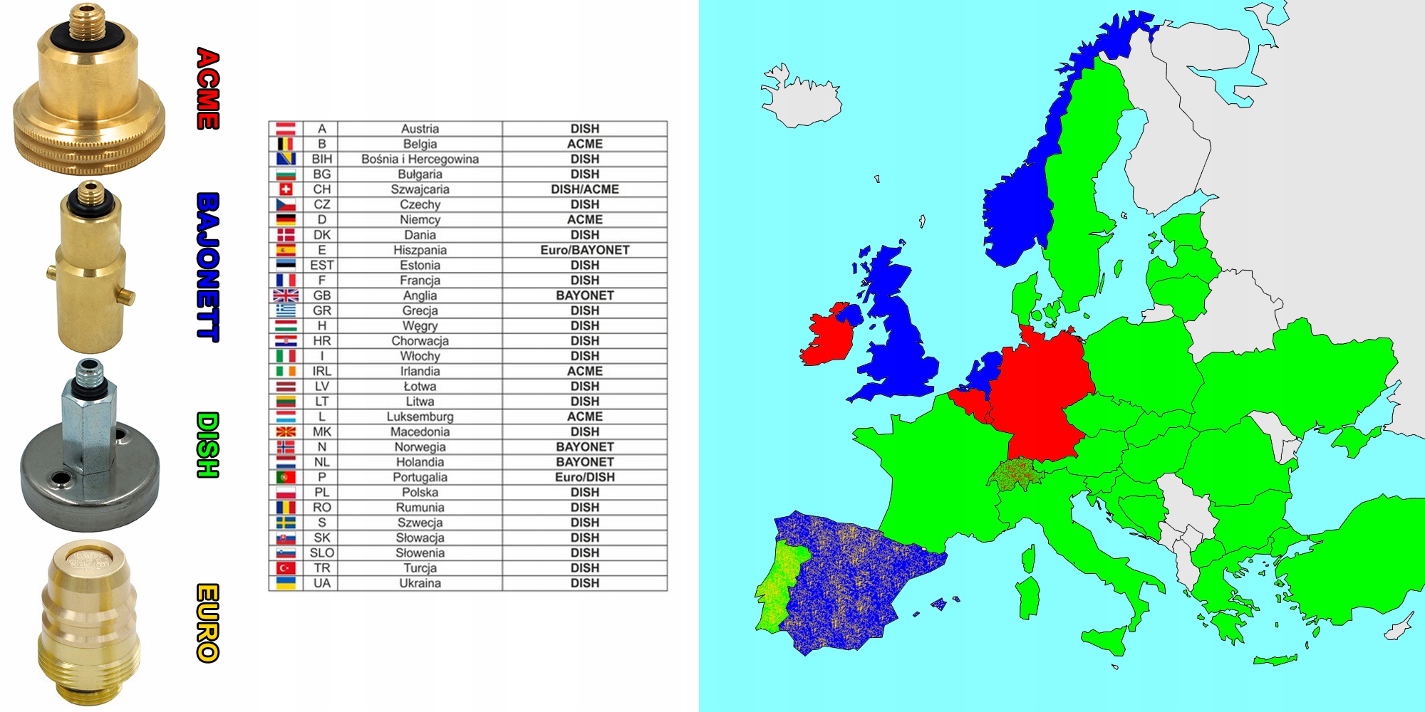 на карті в зеленому місці - це країни, де ми заправляємо газ, використовуючи запропонований адаптер.