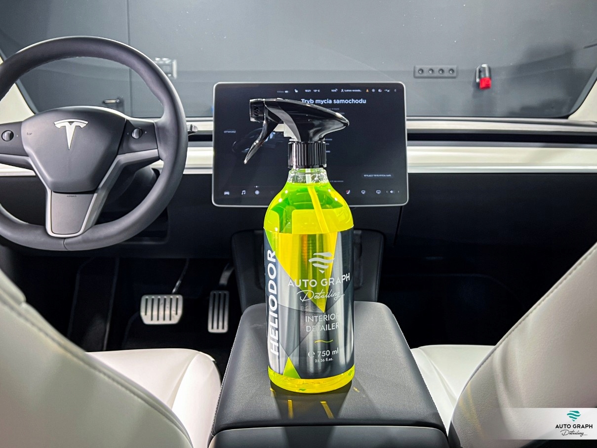 Чи може один продукт не тільки чистити, але й доглядати за всіма поверхнями всередині автомобіля - пластиком, текстилем, оксамитом, деревом або алькантарою, а також рідкокристалічними екранами? Перегляньте HELIODOR Interior Detailer. Він надзвичайно універсальний, ефективний і водночас безпечний для всіх поверхонь всередині автомобіля. Він ідеально підходить для так званого боннетування, тобто ручного чищення оббивки та стелі. Не вимагає вологого полоскання. Видаляє забруднення, надаючи поверхні природний вигляд і залишаючи сатиновий фініш. Створює антистатичний шар, який уповільнює накопичення пилу. Продукт готовий до використання.