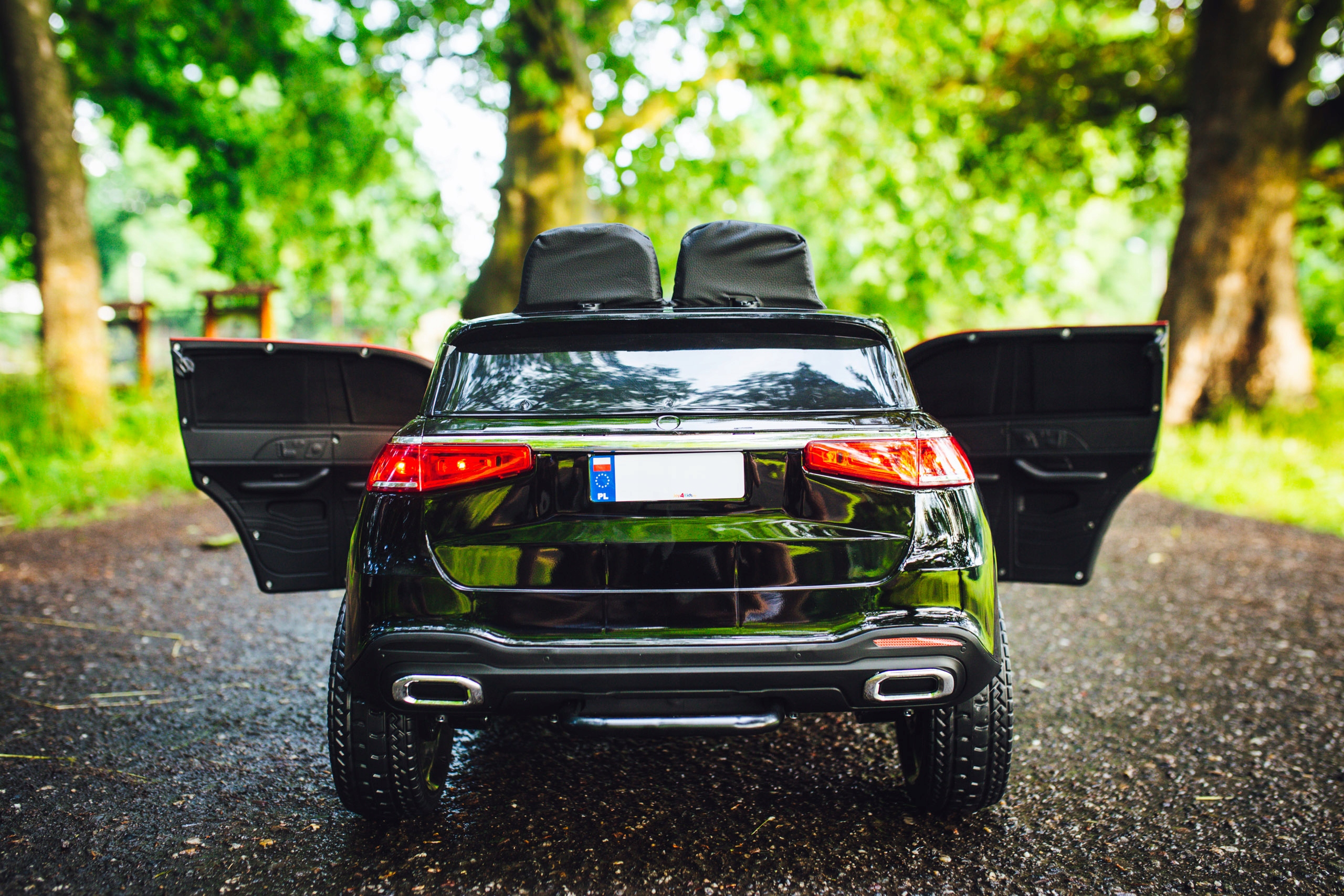 Автомобіль має широке сидіння з високою спинкою, спрофільовано так, щоб маленькому водієві було максимально зручно. Безпеку під час руху забезпечать спеціальні ремені та замок, що захищає двері від відкриття. Опція повільний старт означає, що автомобіль не ламається при троганні і гальмуванні, а плавно регулює швидкість, щоб дитина не боявся ривків.