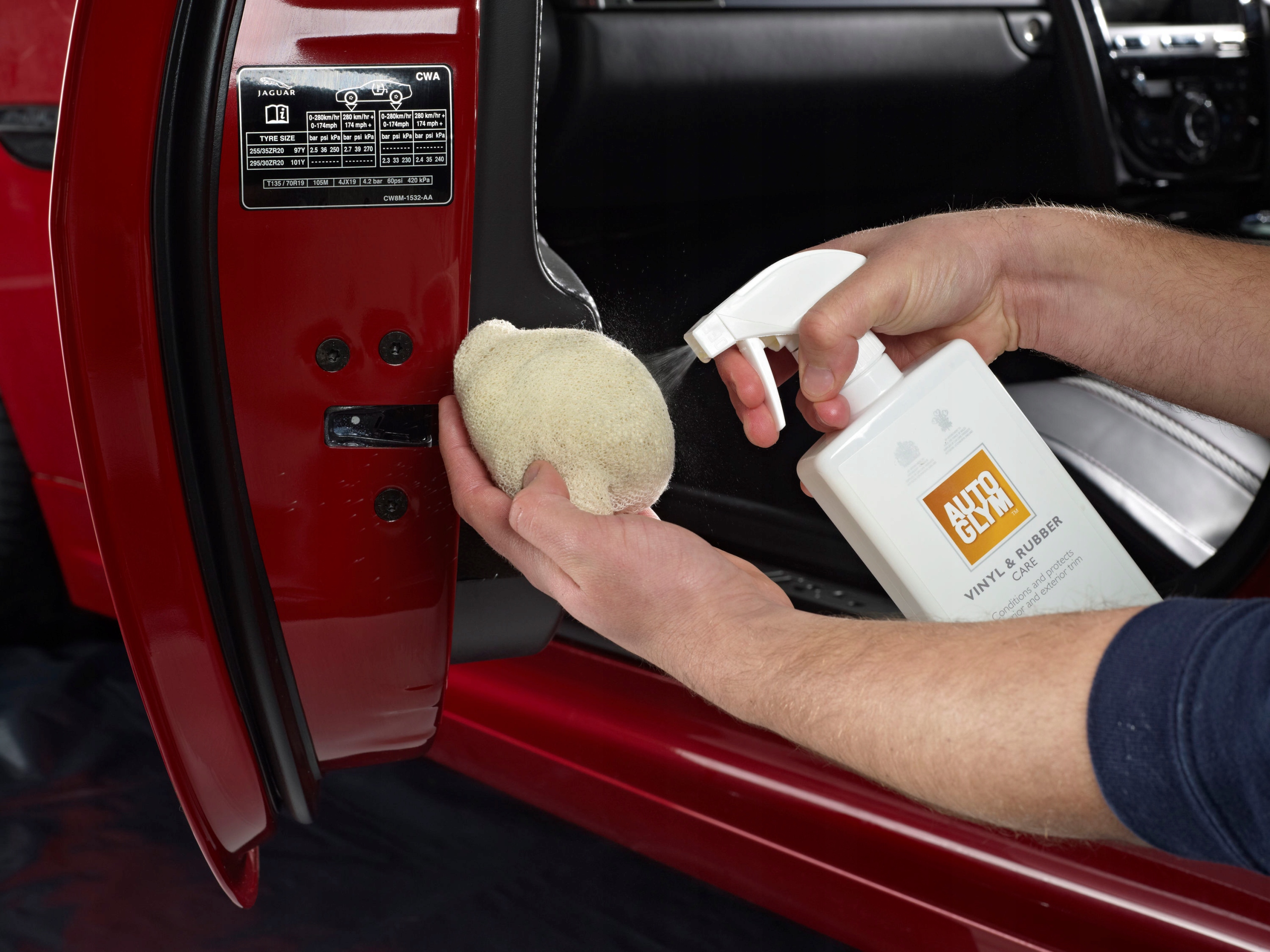 Як і фарба, салон потребує захисту. З часом сонце може призвести до того, що ці поверхні вицвіли, висохнуть і потріскаються. Догляд за вінілом і гумою гарантує, що ці ділянки залишаться захищеними. Його можна наносити для отримання сильного або легкого блиску, а також має свіжий лимонний аромат. Цей простий у використанні розчин дбайливо очищає та створює бар’єр, який відновлює та захищає вицвілі пластикові та гумові поверхні. «Vinyl & Rubber Care» також чудово допоможе змінити ваш двигун. Після чищення засобом для чищення двигуна та машини розбризкуйте вологий двигун і дайте йому висохнути.