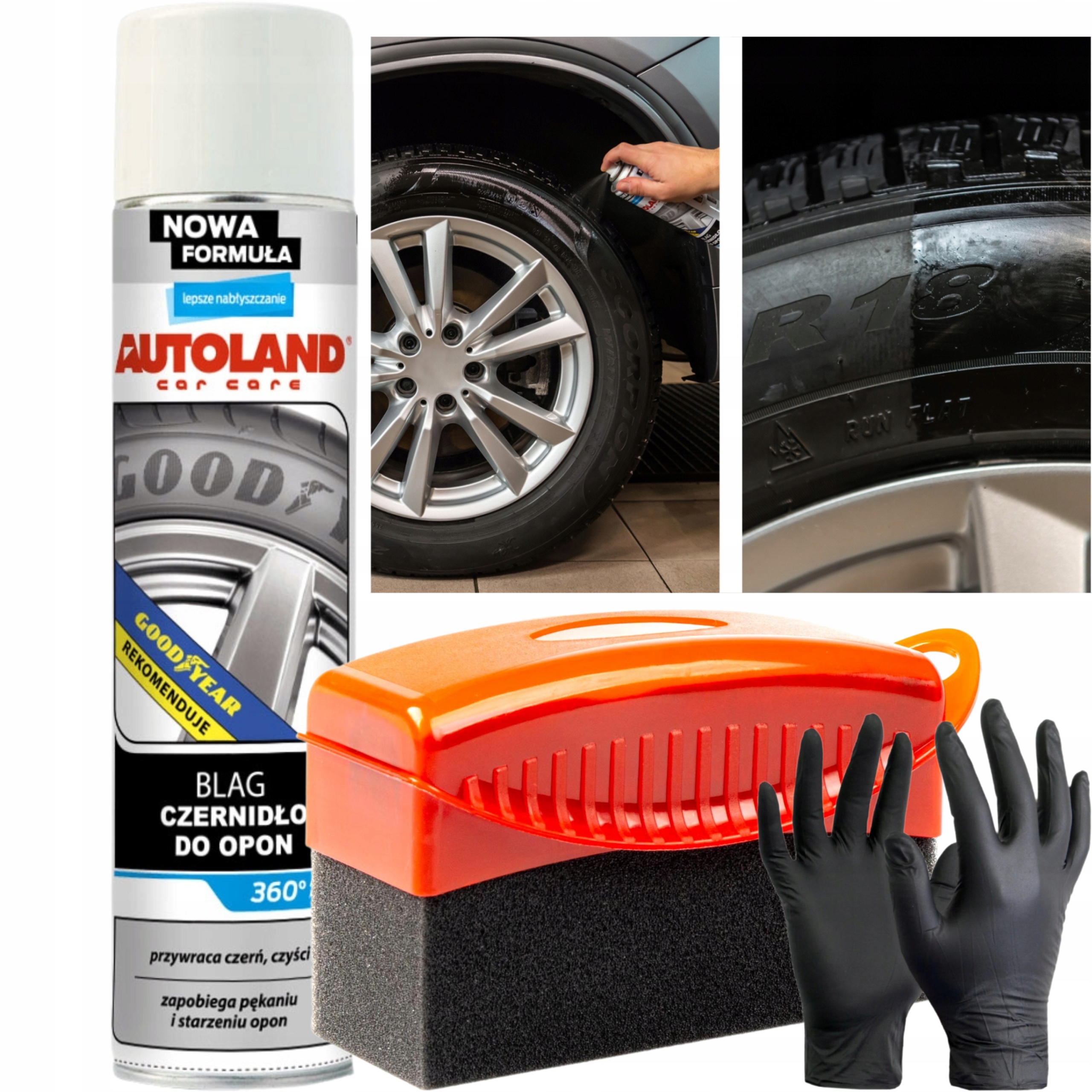 Відновлює оригінальний колір шин і підкреслює їх глибокий, «мокрий» чорний колір. Зберігає та захищає гуму від шкідливого впливу погодних умов (солі, дорожнього бруду). Покращує еластичність гуми - запобігає старінню і розтріскування країв шин. Містить УФ-фільтр - запобігає вицвітанню.