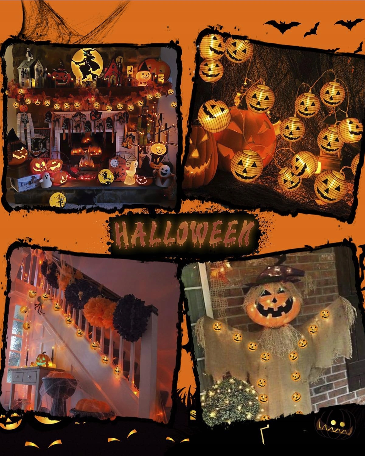 - 20 високоякісних світлодіодних ланцюгів у формі ліхтарів: Цей декоративний легкий ланцюг із гарбузовими ліхтарями виготовлений з нейлонової тканини, яка є більш гнучкою і сильною, її можна використовувати протягом тривалого часу. Побудована світлодіодна лампа виробляється в новому поколінні технології, яскравість зручніша і тепліша, а життя довше. Відстань між ліхтарями - 20 см, а загальна довжина - 6 м.