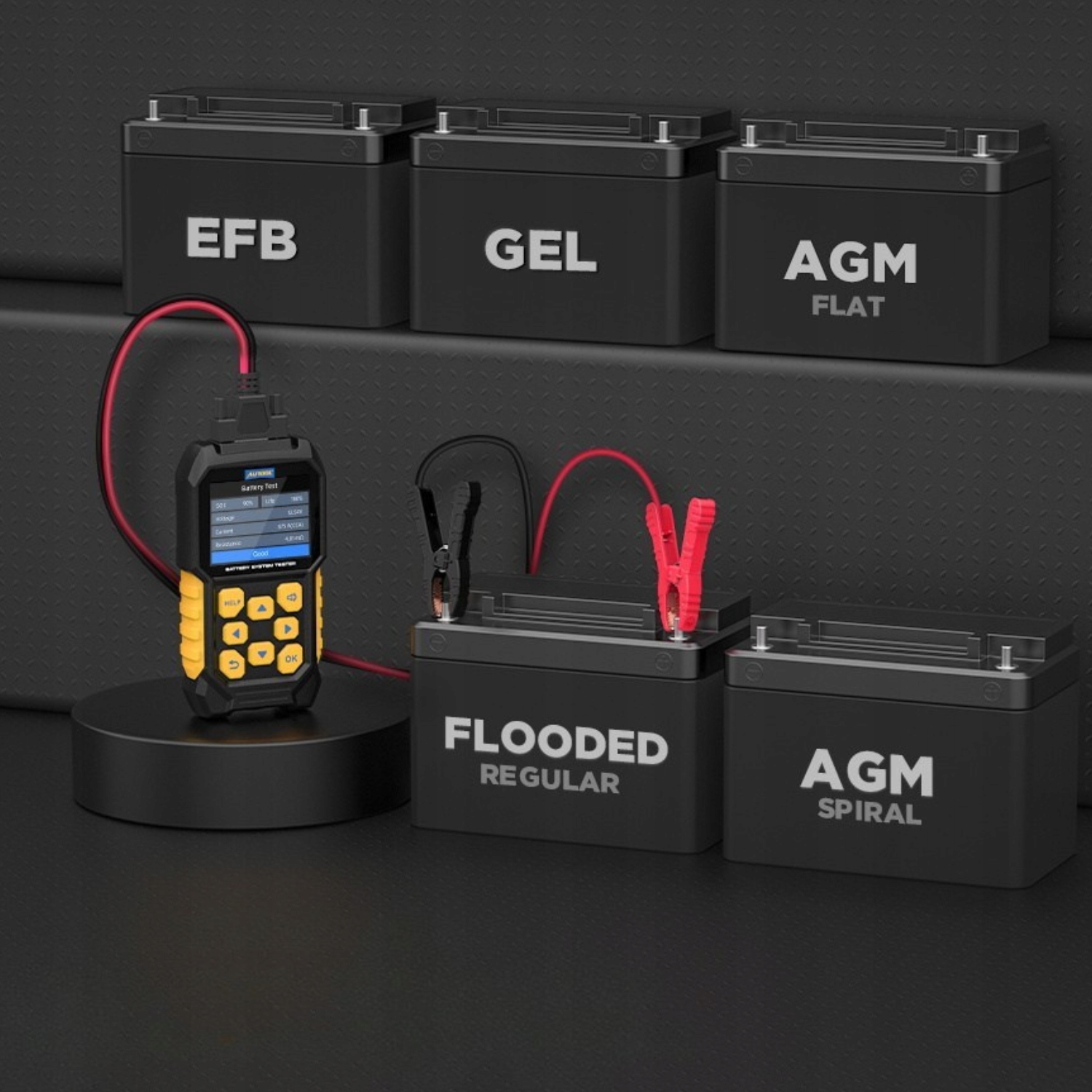- Комплексні тести:справність батареї (SOH), тест на прокручування (Cranking), тест системи зарядки (генератор), тест навантаження (навантаження)