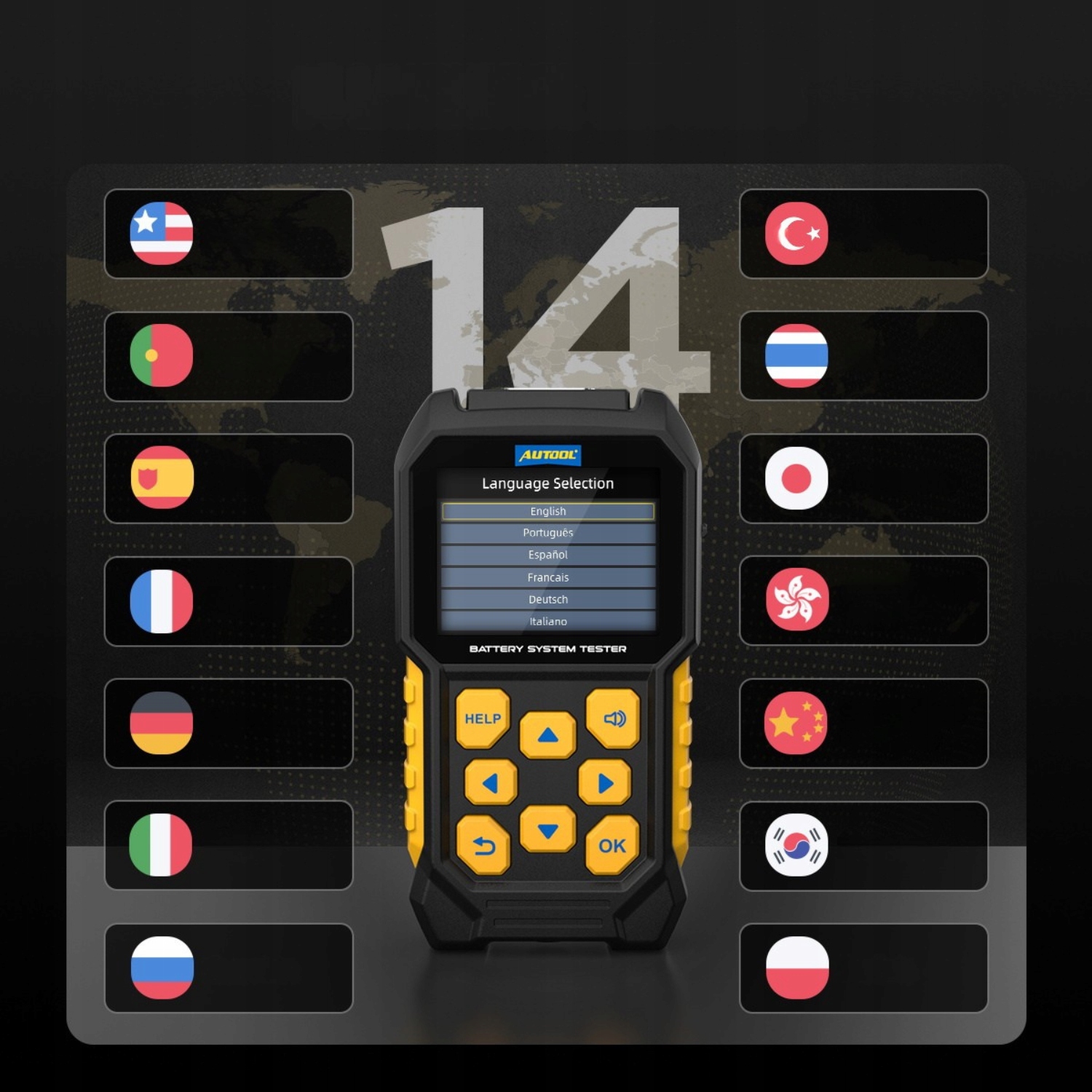 Тестер BT460 має вбудовану функцію швидкої зміни мови інтерфейсу. Ви можете налаштувати меню за кілька секунд, не підключаючись до комп’ютера.