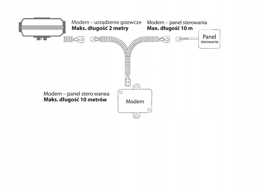 - Кабель від нагрівального пристрою до модему – макс. 2 метри.