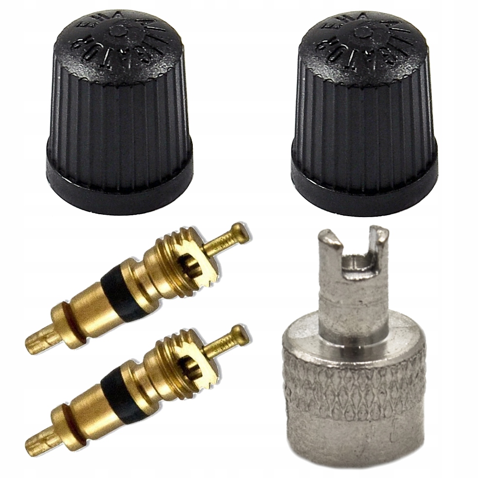 Набір з двох автомобільних клапанів AV, двох ковпачків клапанів і ключа для встановлення клапанів клапанів.