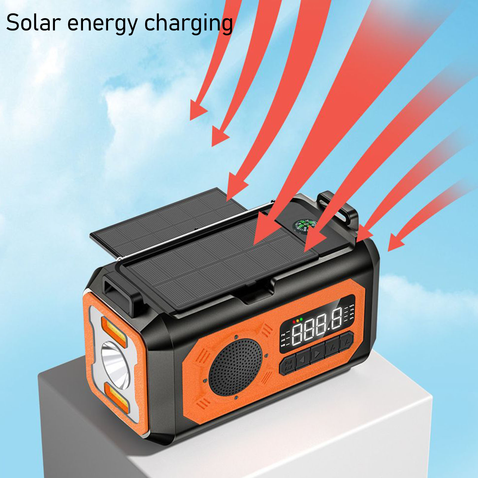 - Застосування: 1. Функція SOS-нагадування, 2. Банк живлення, 3. Ліхтарик, 4. Світлодіодне світло для читання, 5. Радіо AM FM WB, 6. Компас, 7. Гніздо для навушників. Ліхтарик може висвітлювати до 20 метрів у темряві. Дуже гучне нагадування SOS може полегшити людям навколо вас помітити вашу присутність. AM FM WB може надати цінні джерела інформації. Лампи для читання ідеально підходять для читання в кемпінгу. Оснащено роз’ємом для навушників, тому ви можете використовувати навушники, коли хочете насолоджуватися радіо наодинці