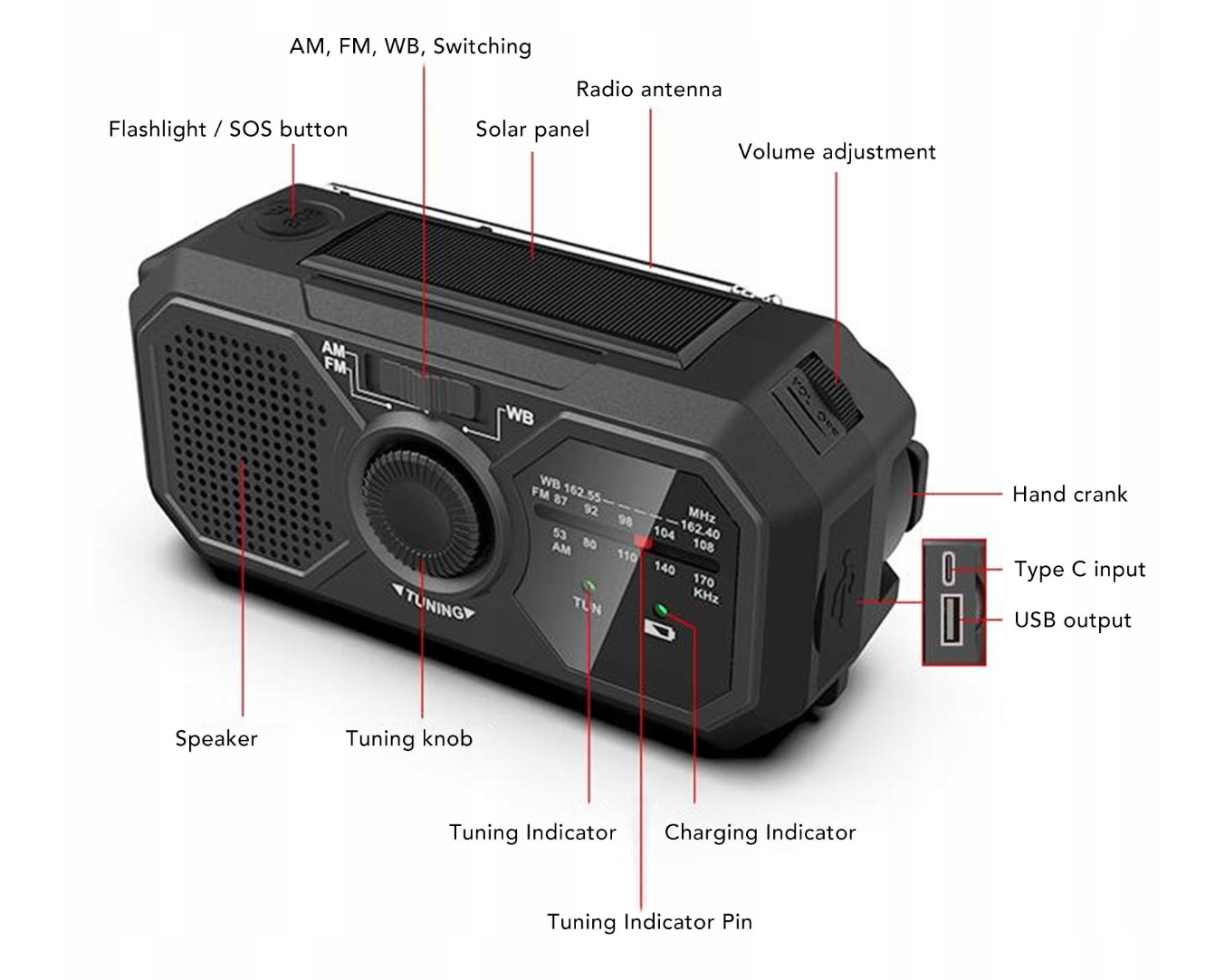 3. ФУНКЦІЯ СПОВІЩЕННЯ SOS: Екстрене радіо має стандартне аналогове налаштування каналів погоди AM, FM і NOAA з оповіщеннями SOS, які є важливими для домашнього використання та подорожей.
