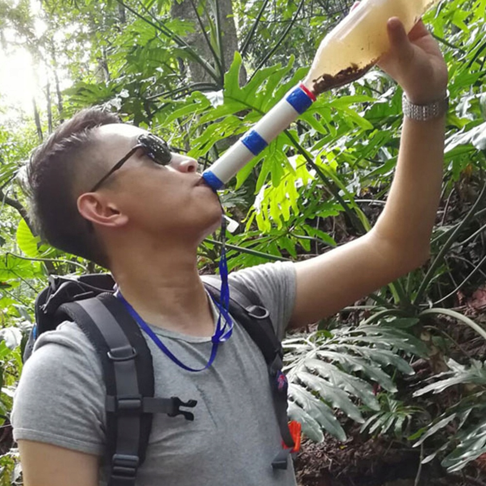 1. Нижню нитку зовнішньої соломинки для очищення води можна підключити до пляшки з водою та мішка для води для прямого, зручного та швидкого пиття.