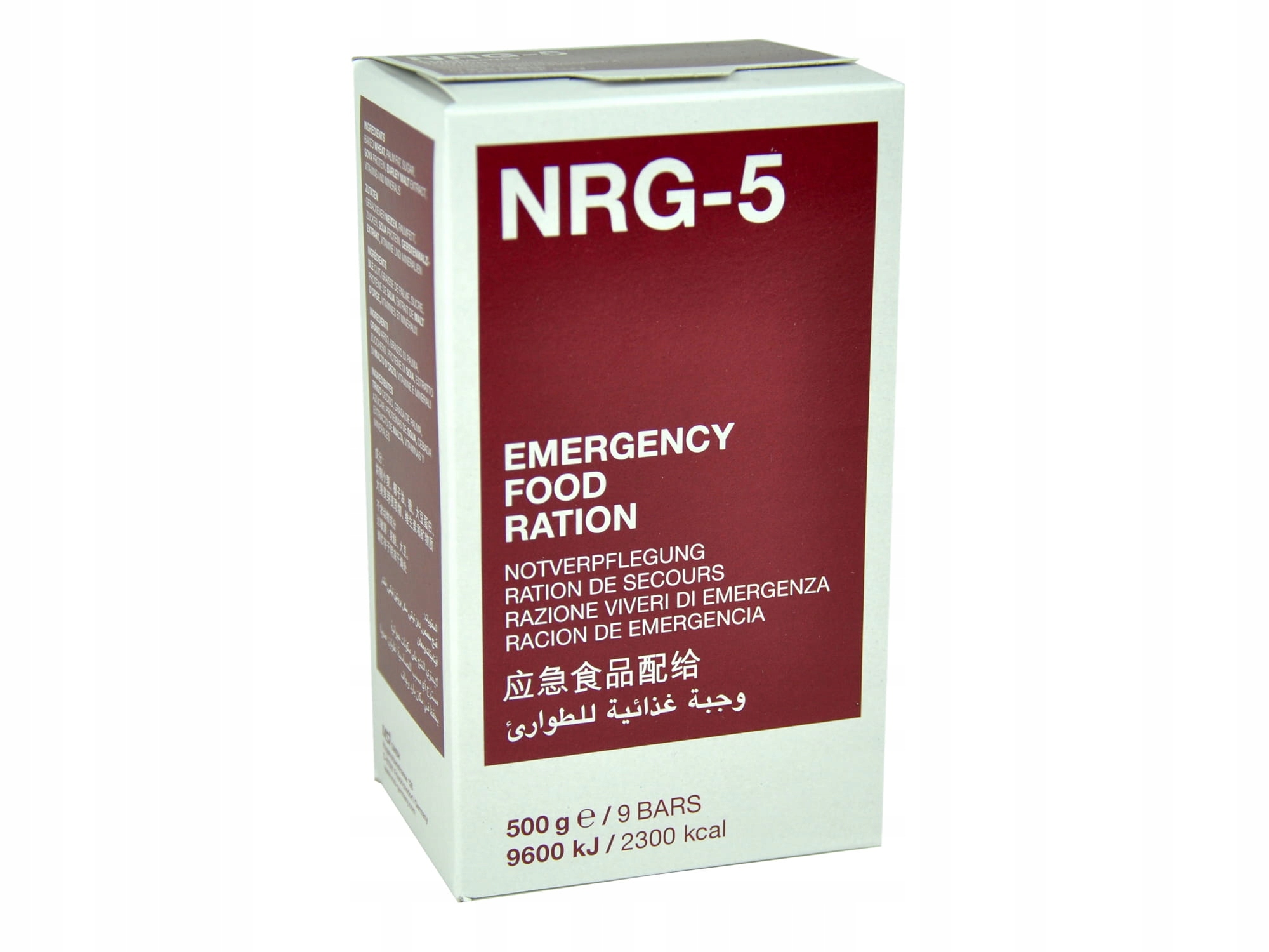 - Малий розмір (14 x 8 x 6 см) у поєднанні з хорошим балансом поживних речовин та високою калорійність робить NRG -5 ефективниму різних застосуваннях на природі (походи, виживання) і, звичайно, у кризових ситуаціях.
