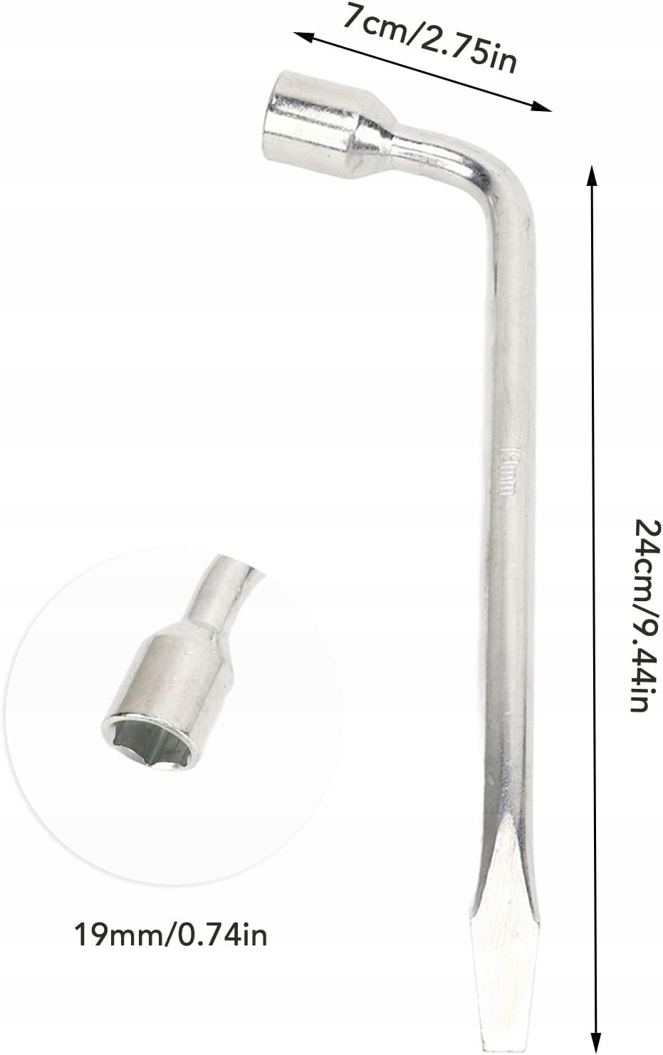 Подвійна конструкція ключа розроблена з 2 кінцями. Один кінець - це ключ розетки, а інший кінець - це дриль, який також працює як лопатка. Висока динамометрична ключ з високою міцністю з відмінною здатністю до затягування ковпачків, що може значно підвищити ефективність роботи. Ключова захист від корозії виготовляється з 45 сталі з оцинкованою та стійкою до іржі оцинкованими і не деформується і не трісне. Використання вдосконаленої ручки легко зрозуміти і широко використовується для обслуговування автомобілів та проведення шестикутних заходів з видалення болтів. Практичний ключовий інструмент - це хороший інструмент для ремонту автомобілів, особливо для гвинтів або гайок з надзвичайно вузькими або глибокими канавками.