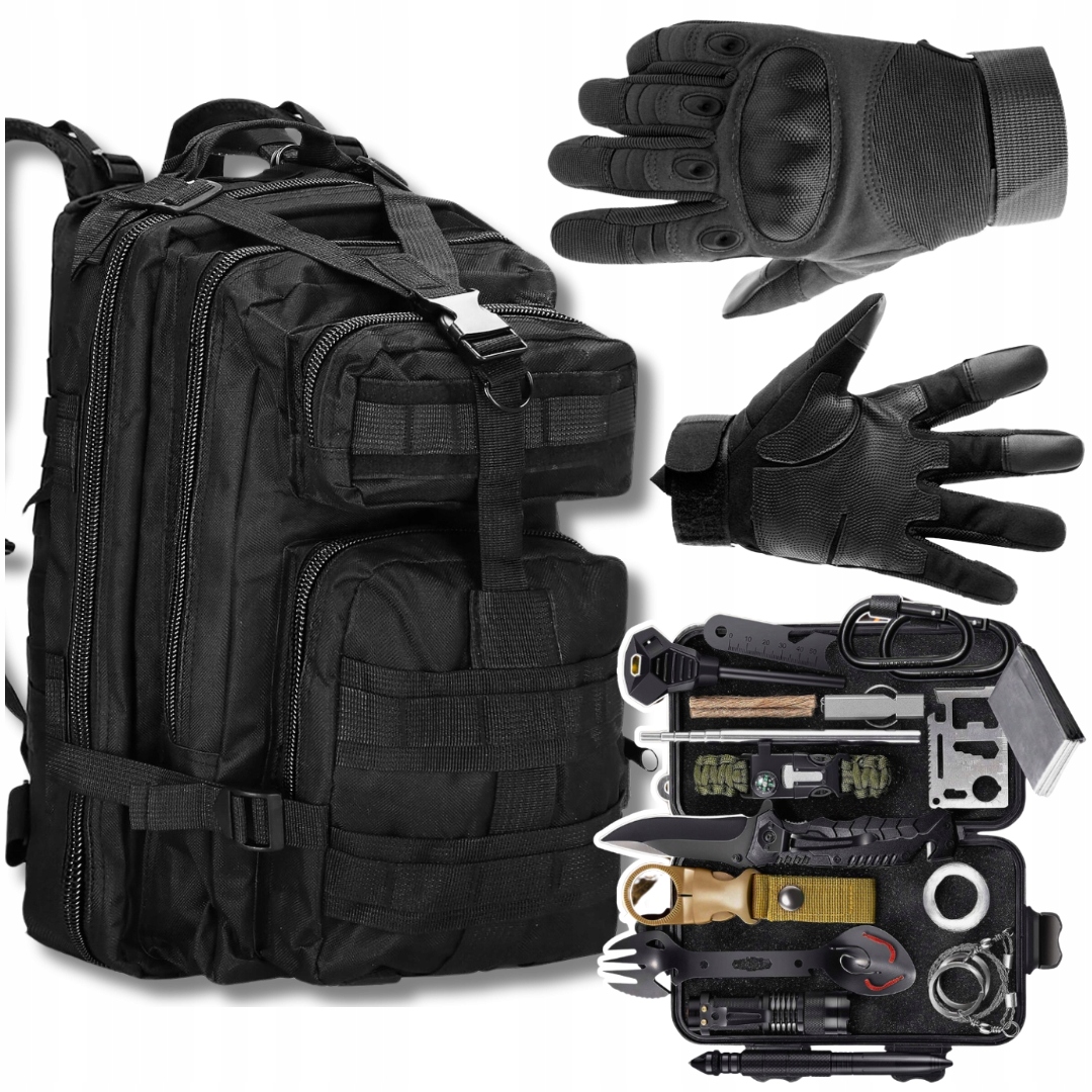 Аварійний набір + захисні рукавички + чорний військовий рюкзак