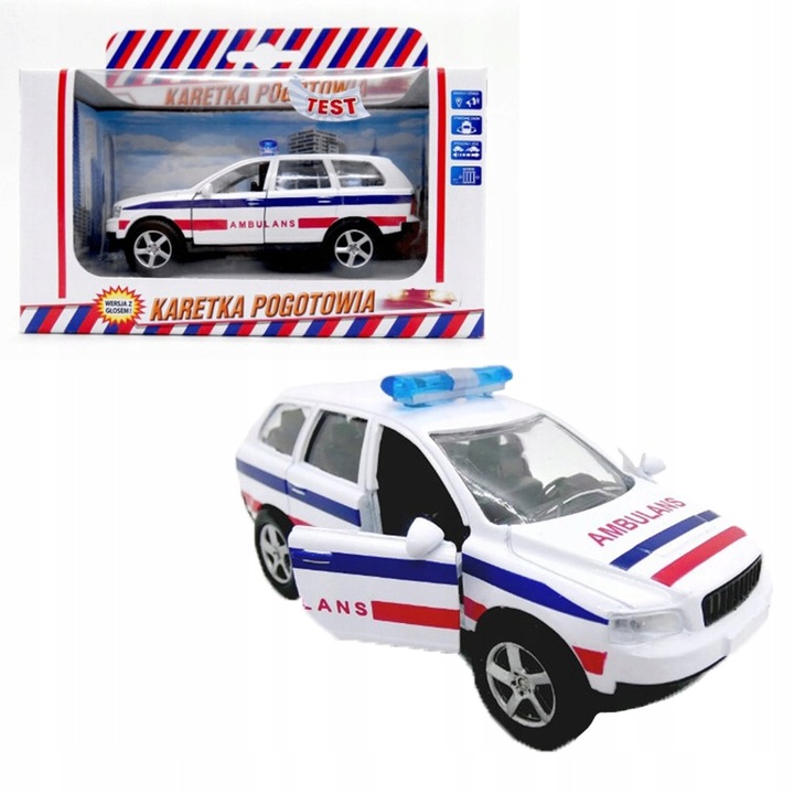 У автомобіля «Швидка» відкриваються двері та багажник, привід відтягується, і при натисканні на автомобіль вмикаються верхні ліхтарі і ви чуєте звуки сирени та фрази: