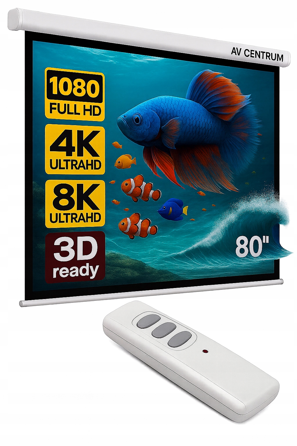 Розроблений на шляху avcentrum за допомогою класів Avline Premium пропонується в касеті білого металу, що збільшує довговічність екрану, захищаючи її через пошкодження та пил. проходячи вогні. Завдяки поверхні мульти -шару, вона дозволяє відображати зображення у роздільній здатності Full HD. Рекомендується для презентації, тренувань та аудиторій.