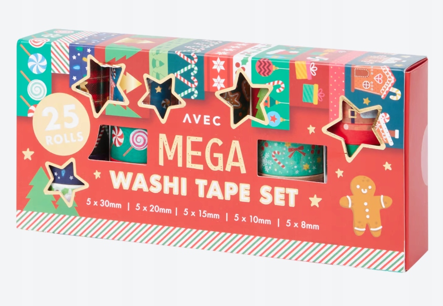AVEC - Декоративна стрічка WASHI новорічні візерунки - набір 25 шт