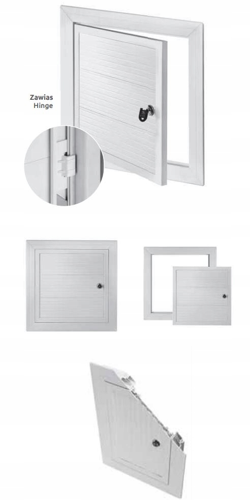Камерна маскувальна рама, виготовлена ​​з ПВХ-профілю, призначена для великих поглиблень як у стінах, так і в стелі. Їх жорстка структура гарантує стабільність, міцність і довговічність. Кришка складається з рами і передньої частини без петлі, яка легко знімається, забезпечуючи легкий і просторий доступ до внутрішньої частини отвору. Вироби характеризуються відмінним рівнем тепло- і звукоізоляції. Всі вироби цієї серії оснащені ригельним замком з ключем. Продукт доступний у розмірах від 225 x 325 мм до 775 x 1175 мм.