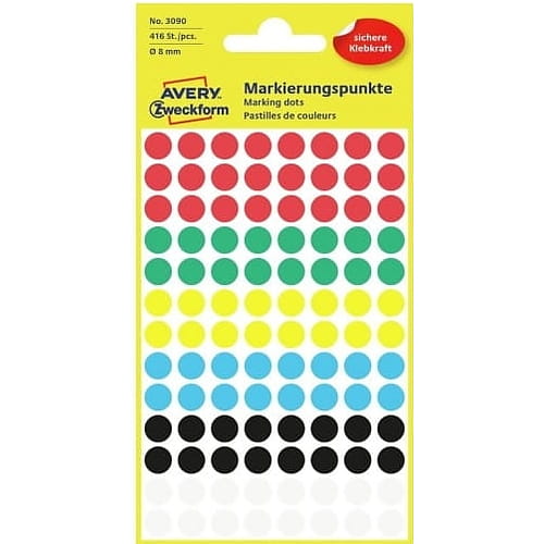 Кольорові круги Avery Zweckform 8 мм 3090 змішаних кольорів